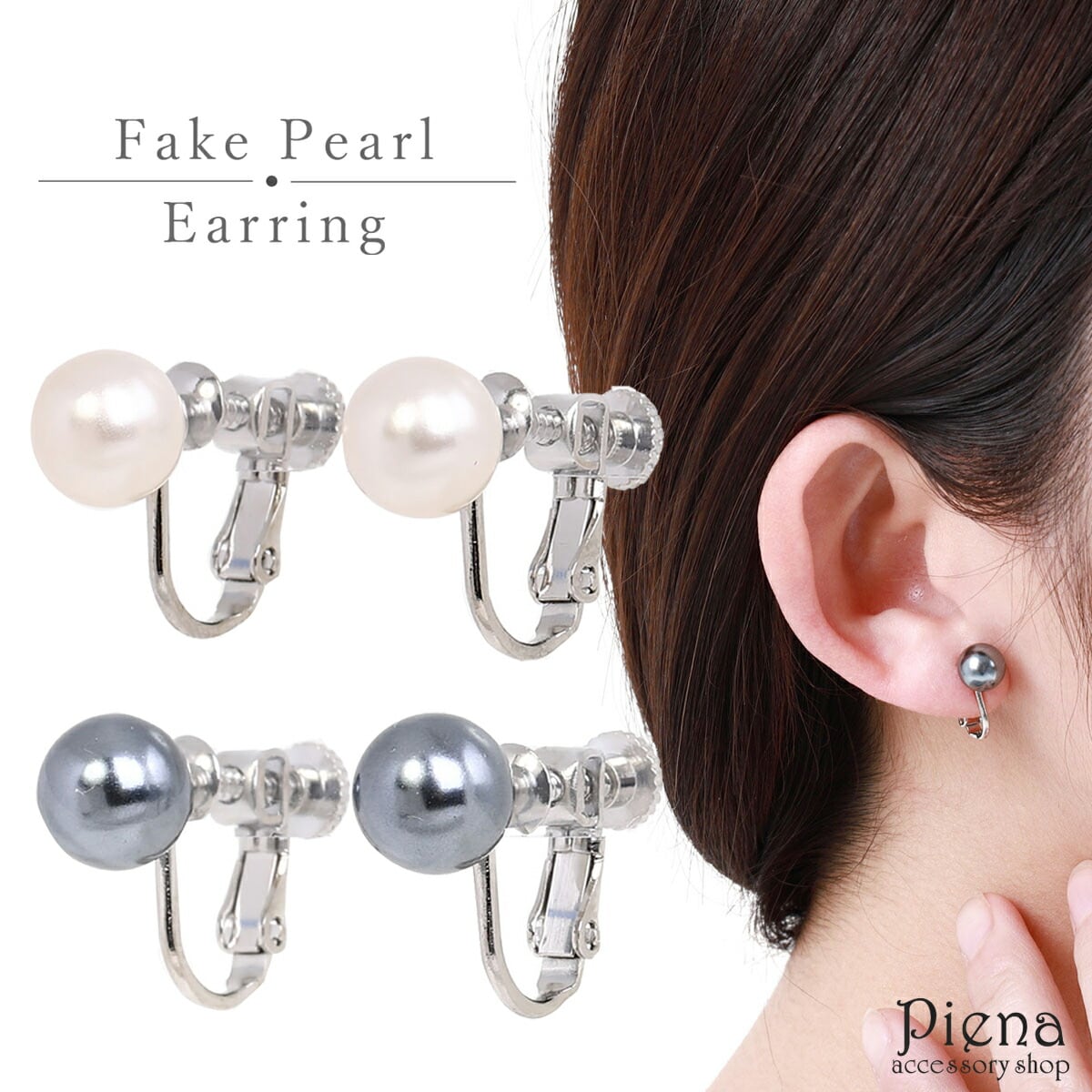 イヤリング レディース フェイクパール 真珠 ネジ式 8mm 8ミリ 1石 1粒 シンプル フォーマル パーティ オフィス デイリー 普段使い カジュアル 定番 華奢 オシャレ 可愛い ホワイト ブラック プレゼント ギフト ラッピング メール便 送料無料