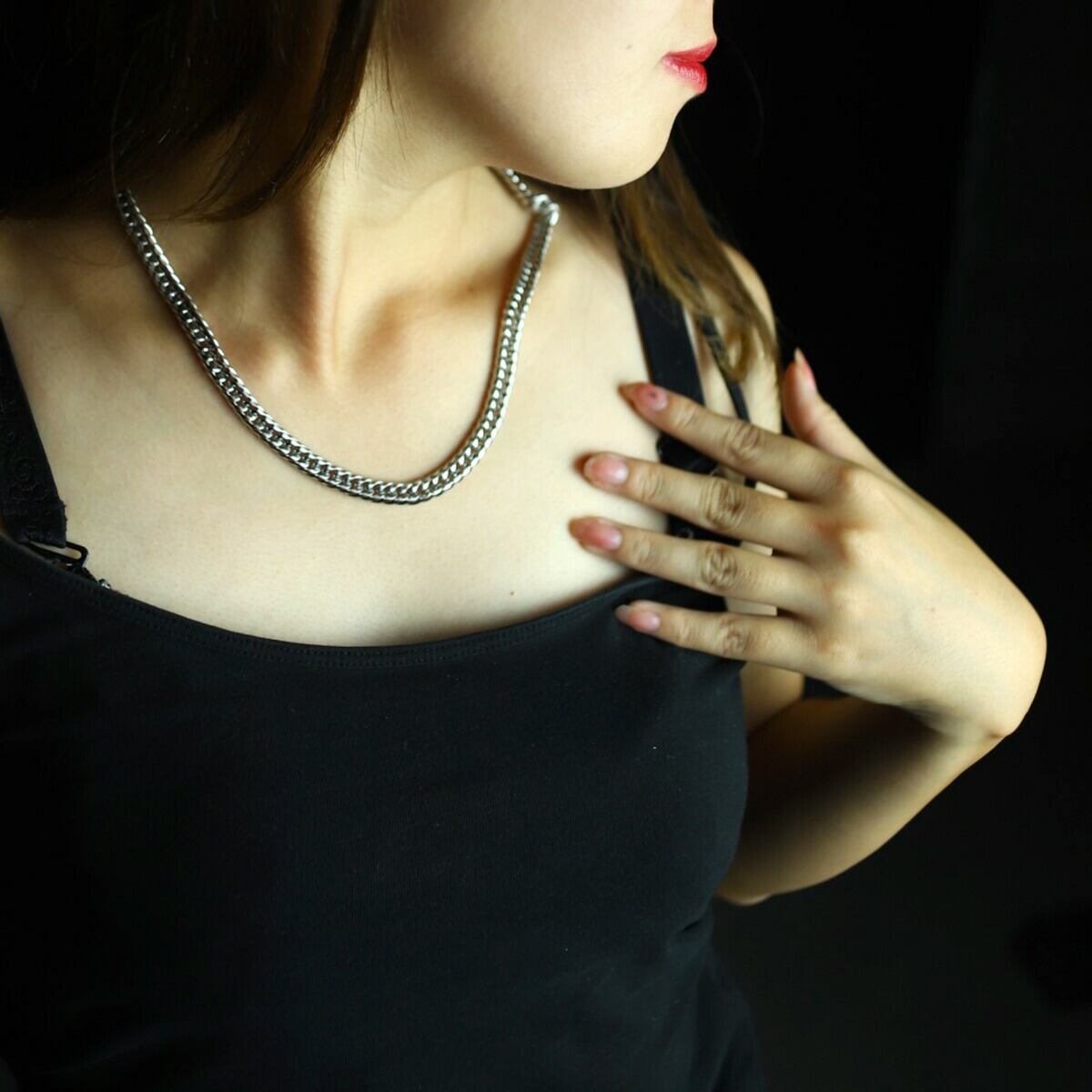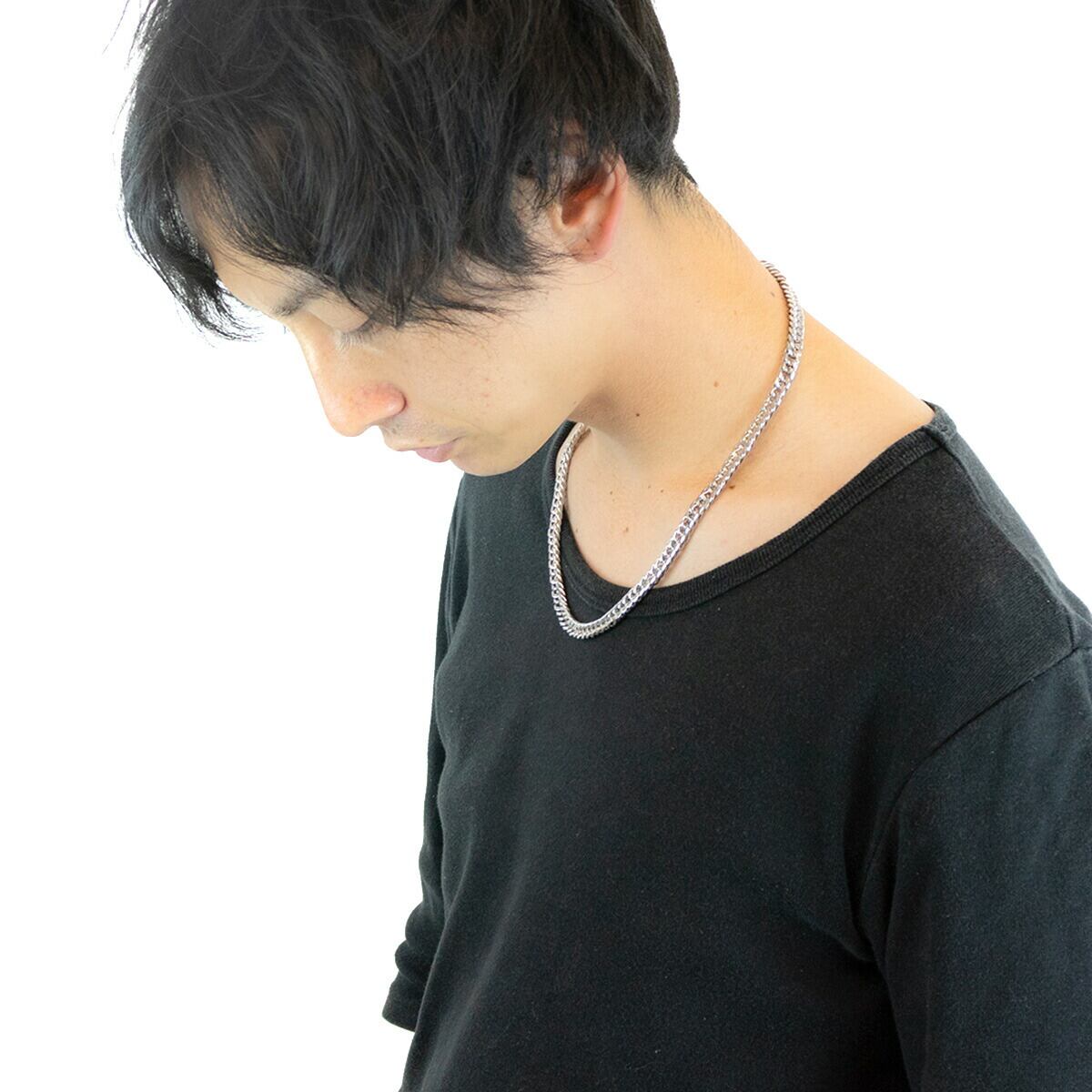 余分な飾りのない、定番の喜平タイプのネックレスチェーン。