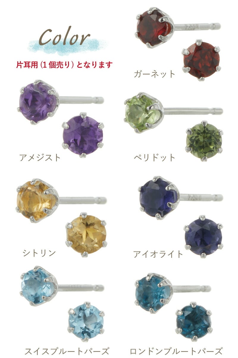 ピアス レディース 片耳用 1個売り 日本製 プラチナ pt900 天然石 3mm 6本爪 ワンストーン 一石 一粒 ガーネット アメジスト ペリドット トパーズ シンプル お肌に優しい 金属アレルギー対応 かわいい 誕生日 記念日 プレゼント ギフト メール便送料無料