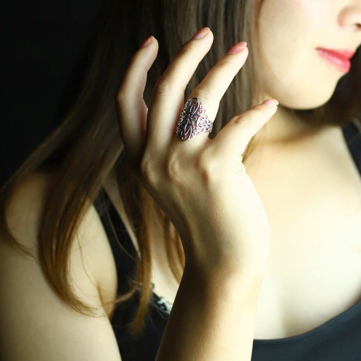 リング レディース フラワー 透かし彫り メンズ ユニセックス 指輪 シルバー925 銀製品 燻し 高品質 シンプル カッコいい クール 大きめ シルバーアクセサリー シルバー 11号 13号 15号 17号 アンティーク エスニック ボヘミアン メール便 送料無料 春夏秋冬 大人気 あす楽