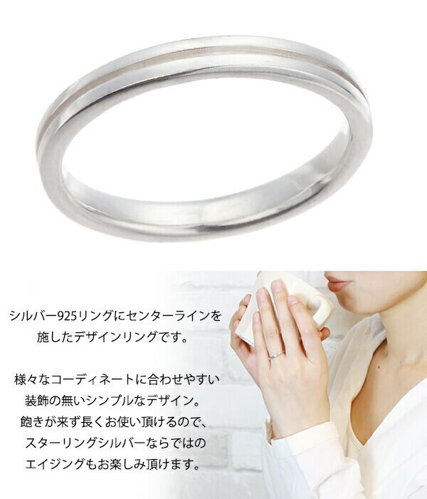 シルバー925製 センターラインリング ストレートライン メタル 銀 シンプル シルバーアクセサリー ペアリングにも レディース メンズ プレゼント用にも ギフト メール便 送料無料 春夏秋冬 大人気 あす楽