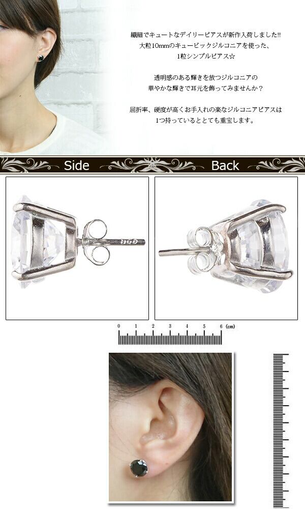 シルバーピアス 大粒10mmキュービックジルコニア メール便 送料無料 春夏秋冬 大人気