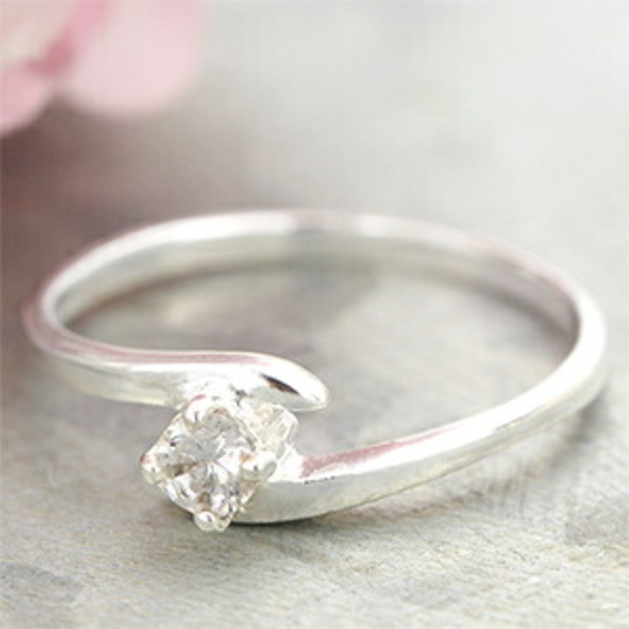 リング レディース 一粒のキュービックジルコニアを挟むようにセット 細め 華奢 ピンキーリング シルバー925製 シルバーアクセサリー レディース シンプル エレガント メール便 送料無料 春夏秋冬 大人気 あす楽