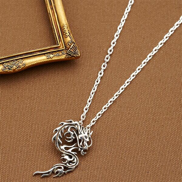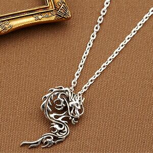人気のドラゴンモチーフシルバーメンズネックレス