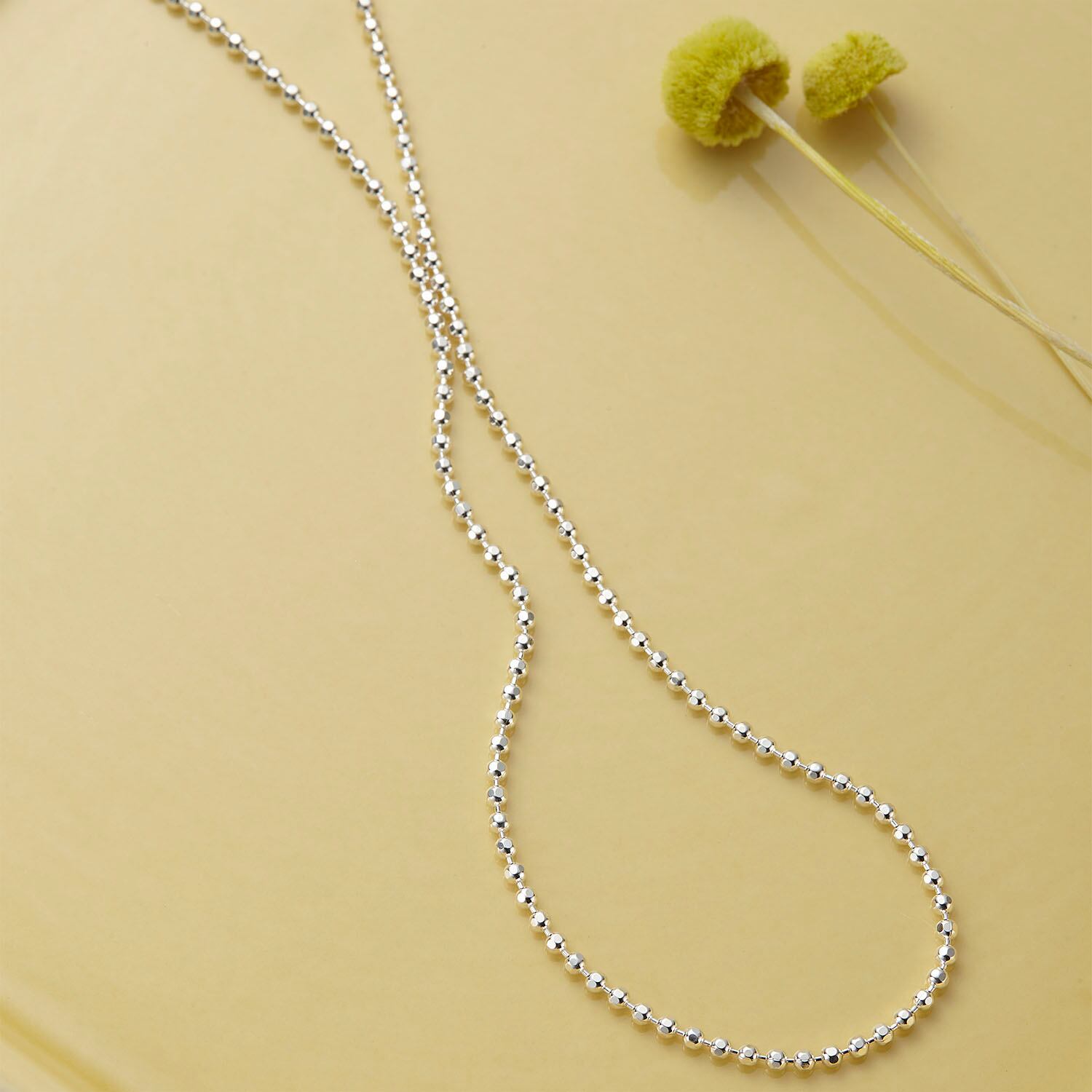 きらりと煌めく繊細なカットボールチェーンは、