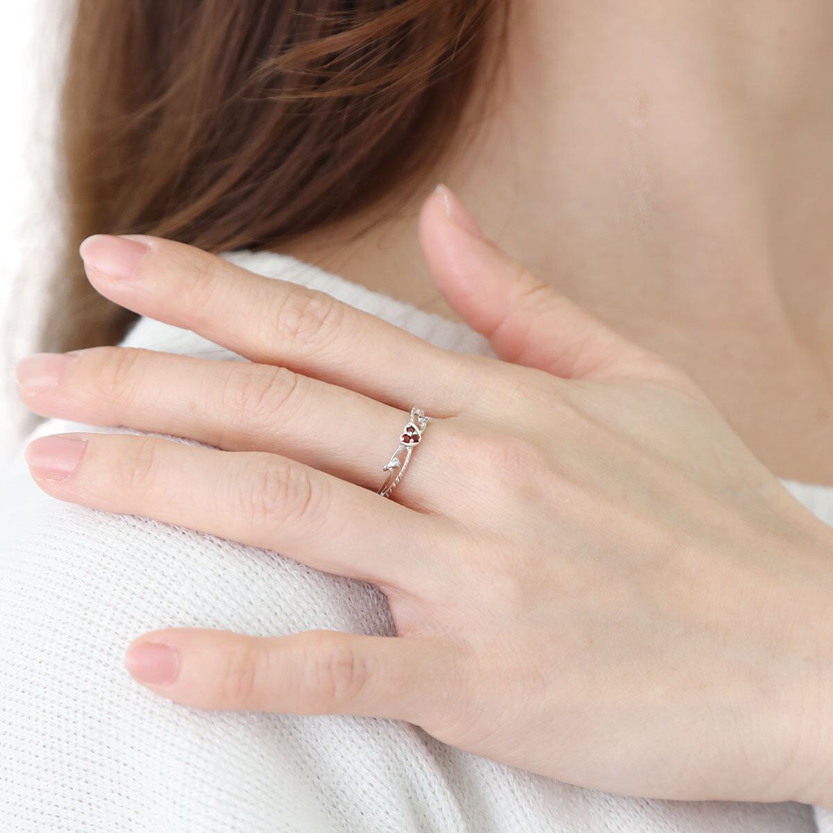 リング レディース シルバー925製 ガーネット 3石 ハート型 1月 誕生石 パワーストーン ピンキーリング 銀製品 可愛い おしゃれ 綺麗 ゴージャス 華やか カジュアル フォーマル 普段使い 記念日 誕生日 プレゼント ギフト メール便送料無料 あす楽
