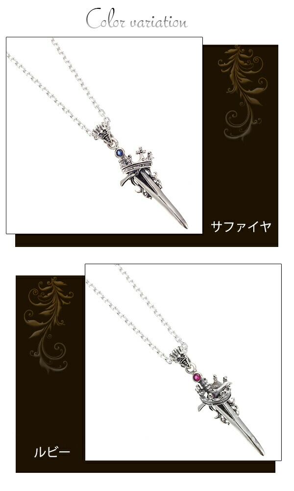 ダガー&クラウンネックレス シルバー925製 ソード 剣 王冠 サファイヤ ブルー ルビー レッド クール 大きめ メンズ プレゼント用にも ギフト 送料無料 プレゼント 春夏秋冬 大人気 あす楽