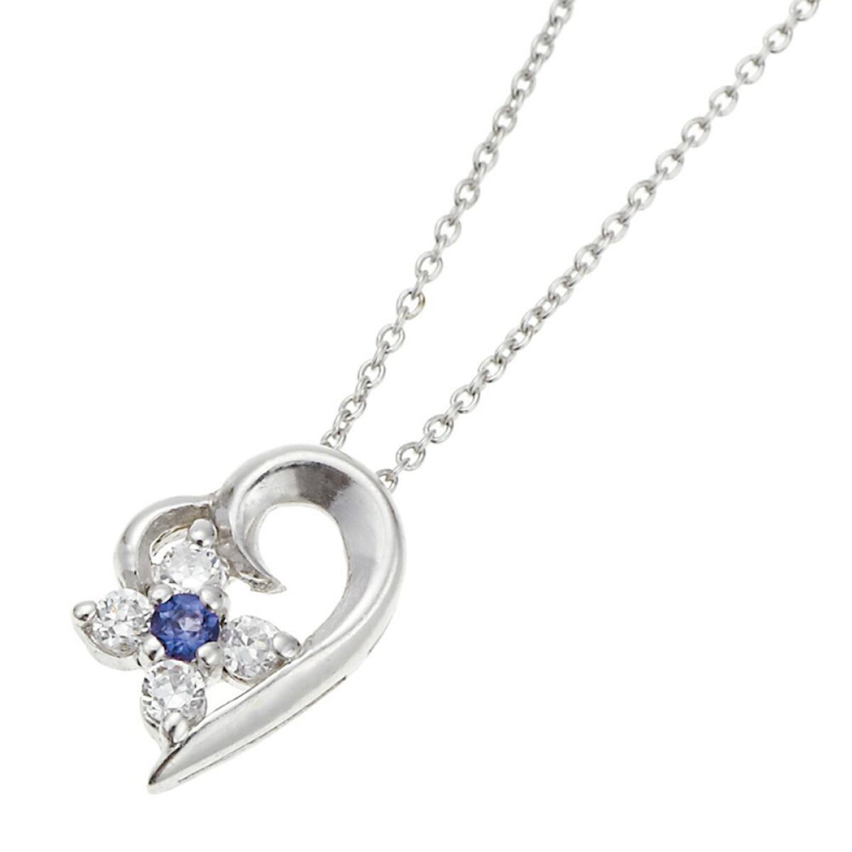 しなやかな細身チェーンにオープンハートとフラワーにセットしたサファイアとキュービックジルコニアのペンダントネックレスです。
