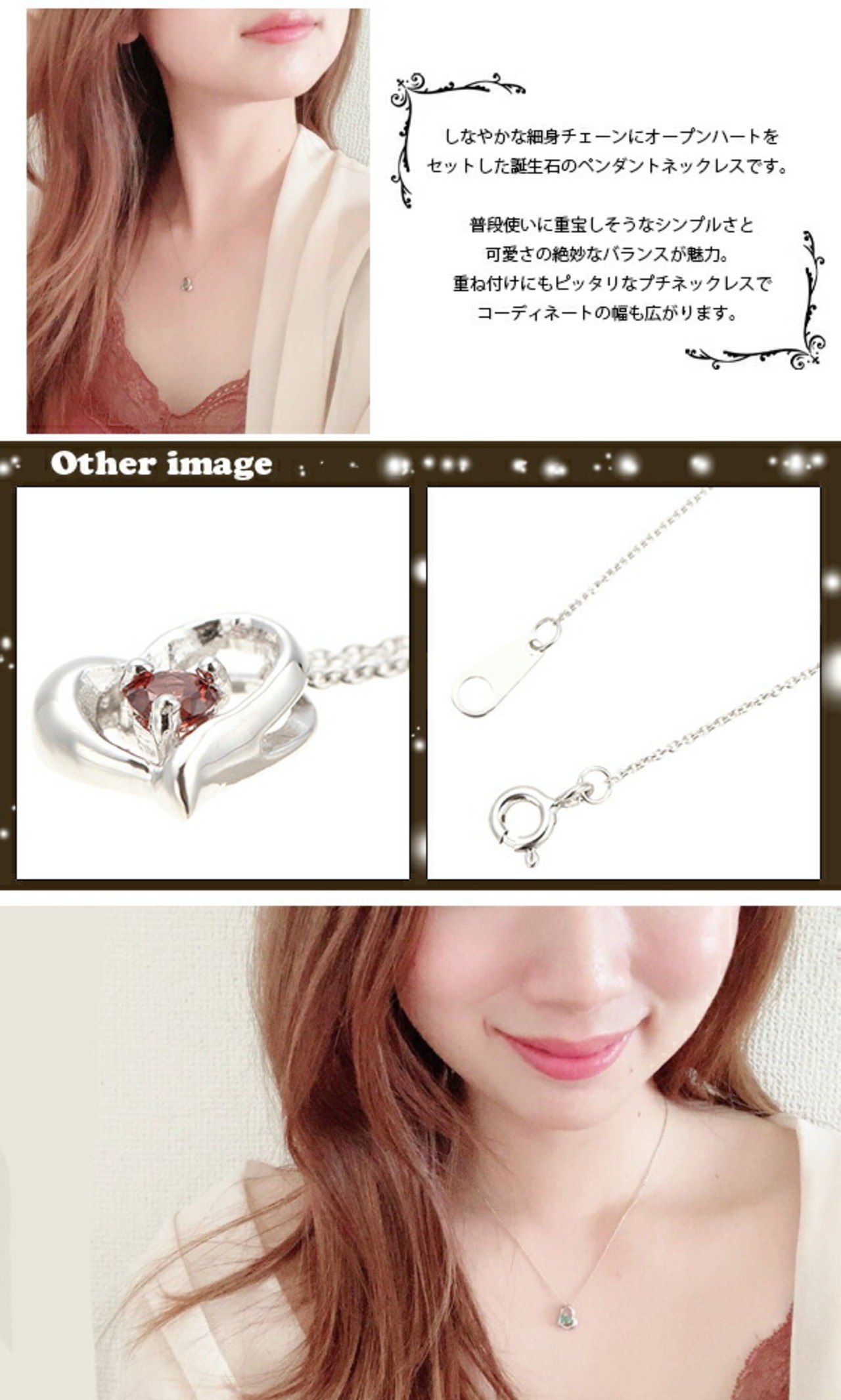 しなやかな細身チェーンにオープンハートにセットした誕生石のペンダントネックレスです。