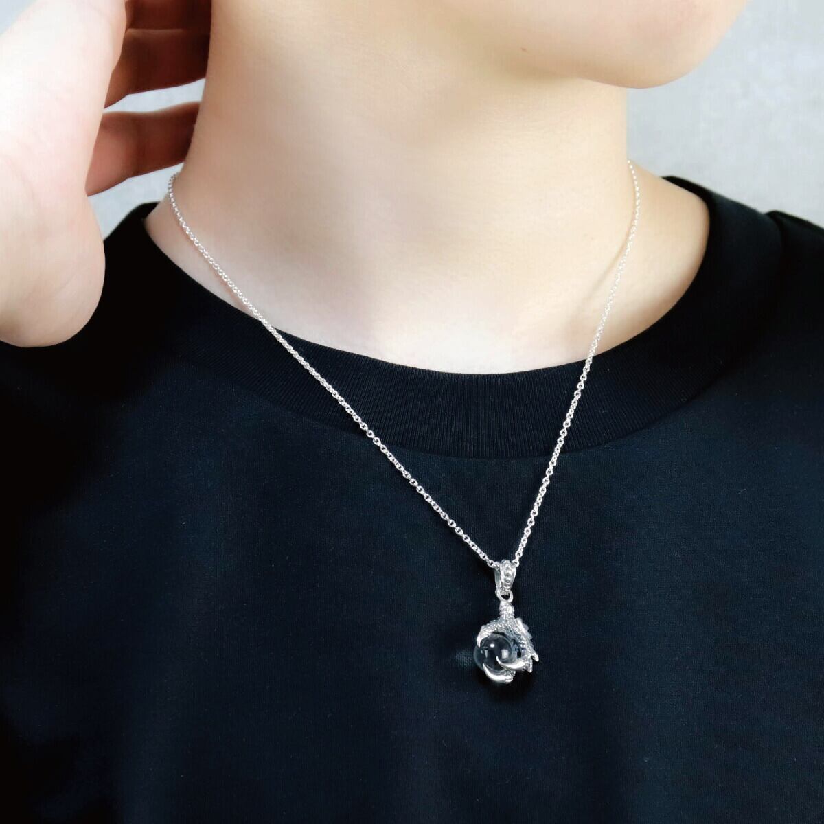 水晶を握りしめる鋭い竜の爪がクールなシルバーネックレス。