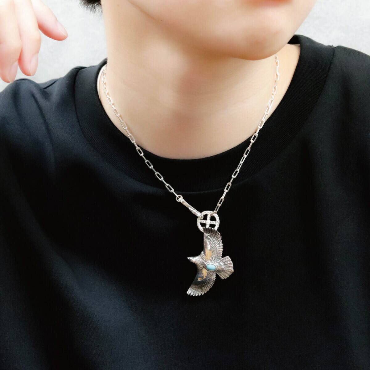 ネックレス ペンダント メンズ シルバー925 イーグル 鷲 ワシ 動物 鳥 ターコイズ 大振り 個性的 かっこいい インパクト 彼氏 旦那 記念日 誕生日 プレゼント ギフト 送料無料