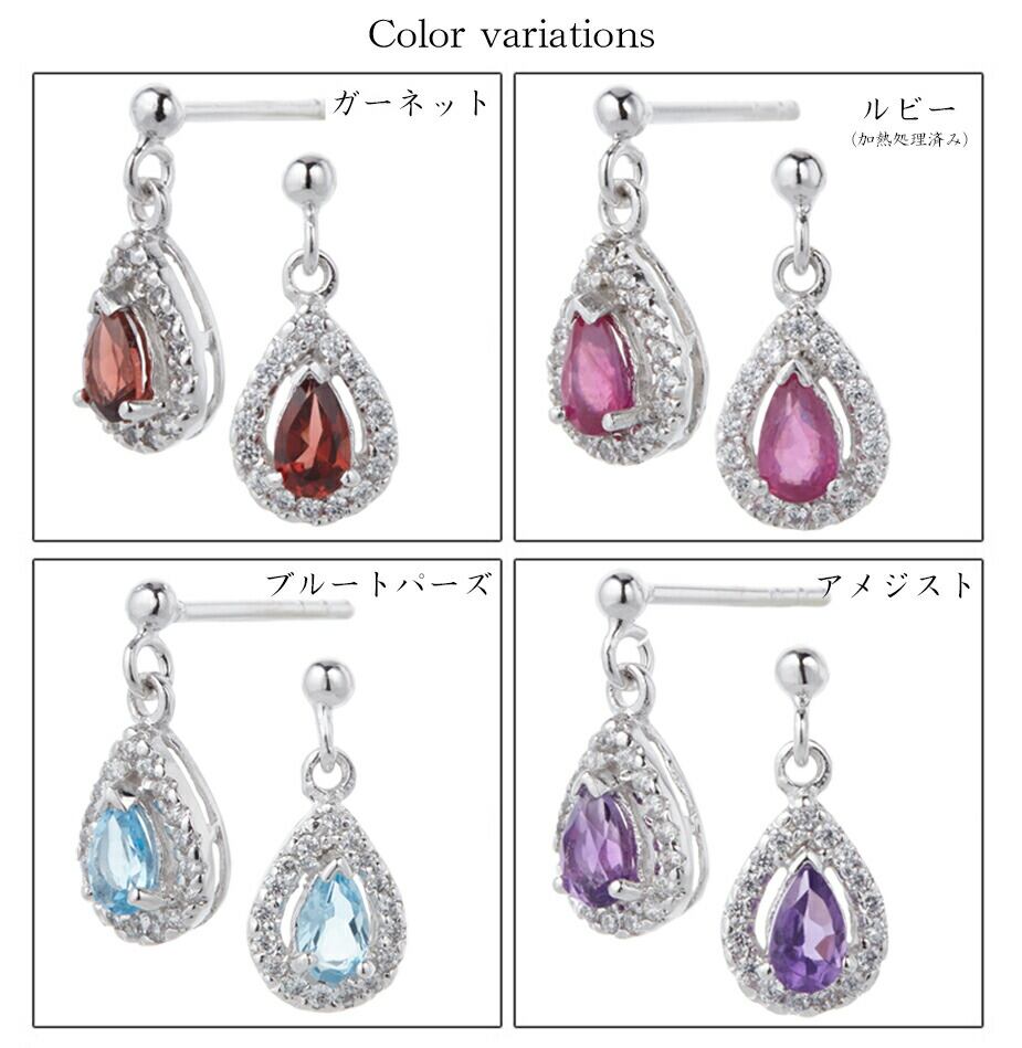 スタッドピアス レディース シルバー925 ディアドロップ型 しずく型 ルビー ガーネット ブルートパーズ アメジスト キュービックジルコニア フリンジ 揺れる キレイ おしゃれ 可愛い 小ぶり 記念日 誕生日 クリスマス ホワイトデー プレゼント ギフト 送料無料 あす楽