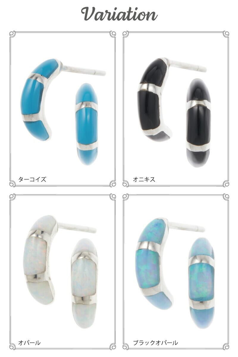 ピアス レディース シルバー925 ハーフフープ C型 ブルーターコイズ ブラックオニキス オパール シンプル ネイティブ お肌に優しい 金属アレルギー対応 かわいい 大人可愛い オシャレ パーティー プレゼント ギフト 誕生日 記念日 メール便送料無料