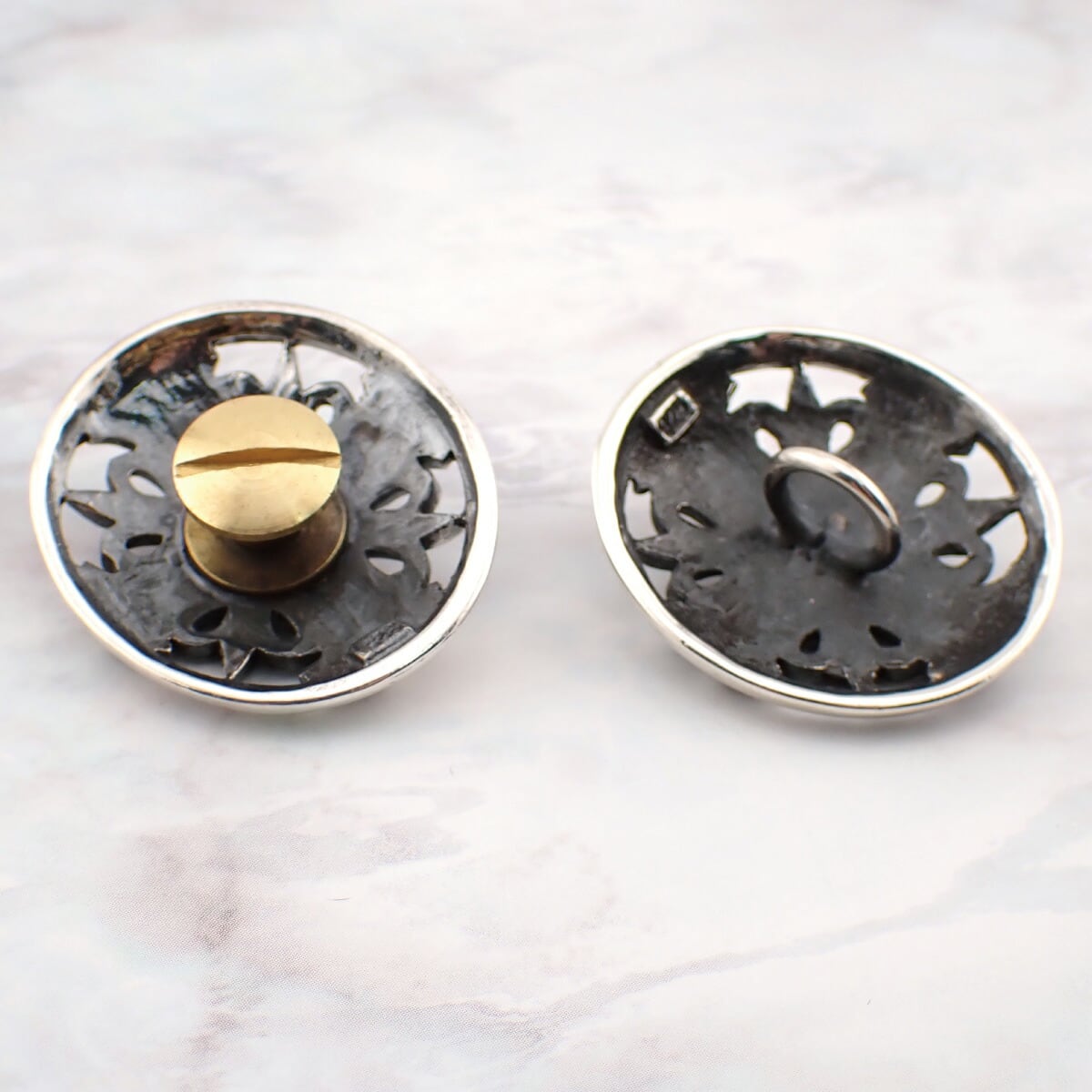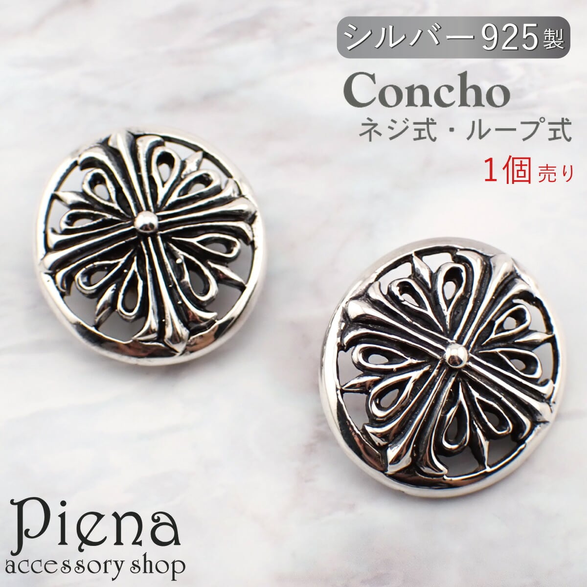 コンチョ ボタン 1個売り レディース メンズ ユニセックス シルバー925製 インディアン ネイティブ 模様 ネジ式 ループ式 DIY 手芸 レザークラフト さいふ ケース カスタムパーツ バッグ 革財布 コンチョのみ メール便 送料無料