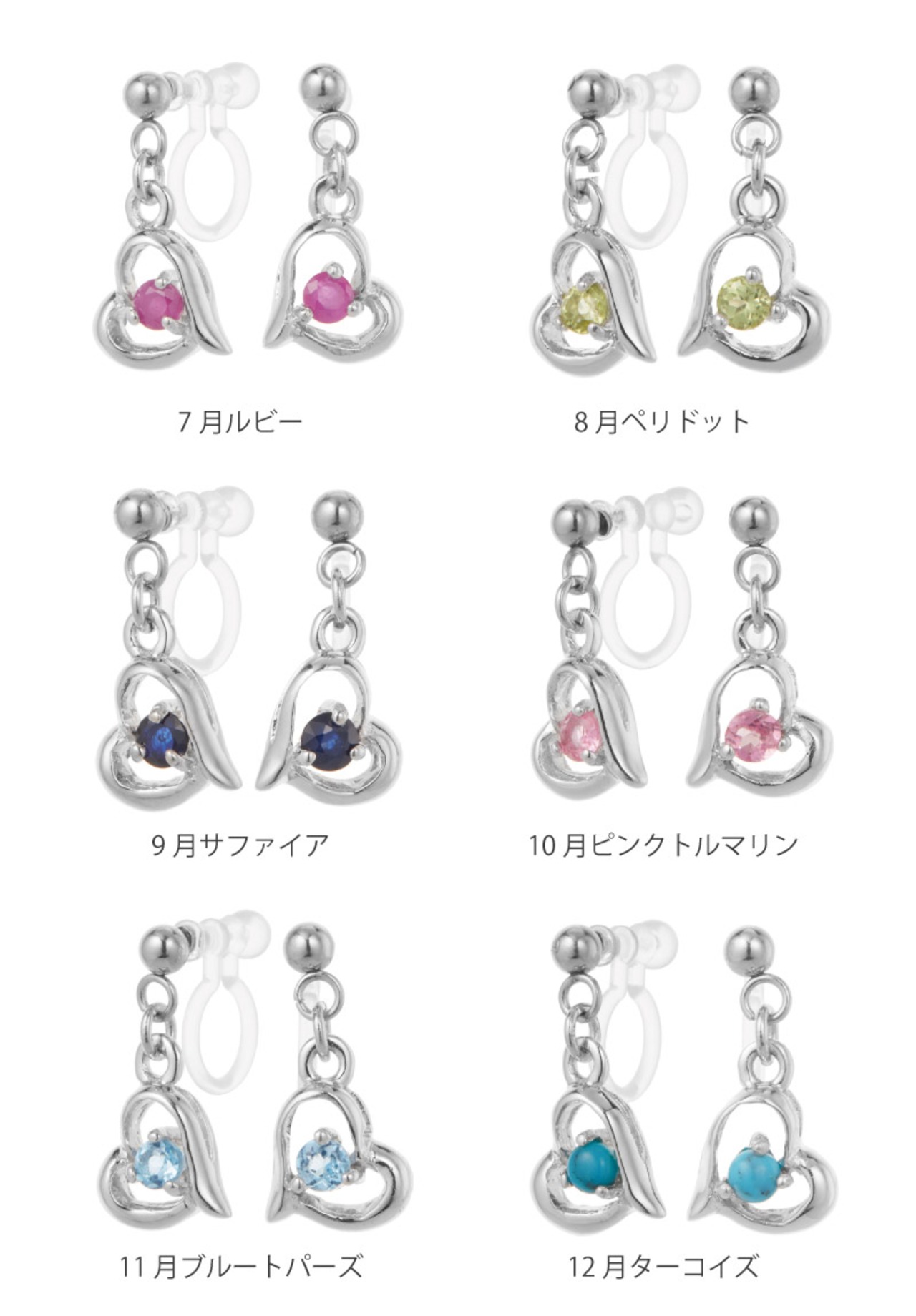6月ムーンストーン、7月ルビー、8月ペリドット、