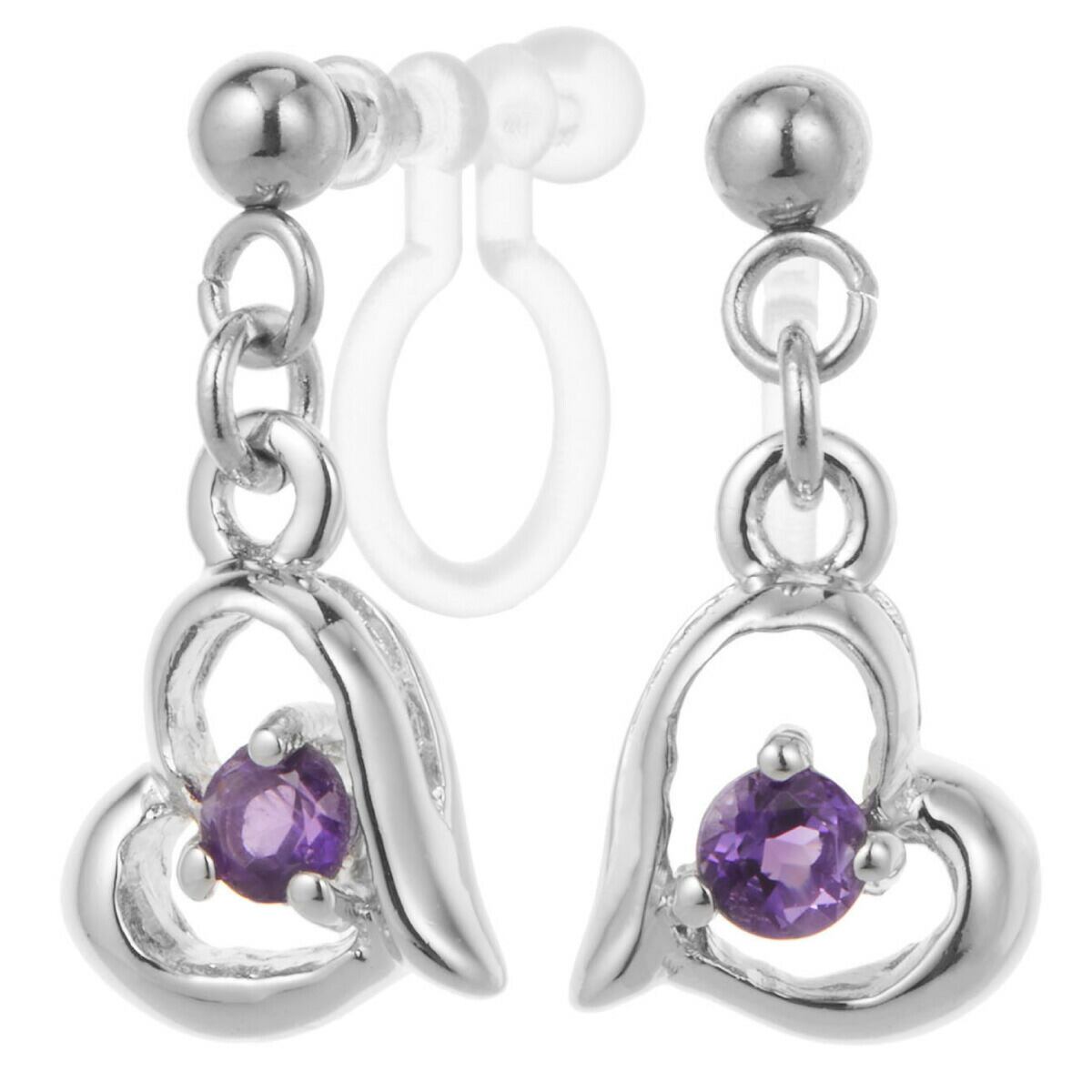 イヤリング レディース ノンホールピアス シルバー925 サージカルステンレス製 オープンハート 1粒 一石 天然石 誕生石 お守り オメガ 樹脂 揺れる 小ぶり シンプル お肌に優しい 金属アレルギー対応 痛くなりにくい 誕生日 記念日 プレゼント ギフト メール便送料無料