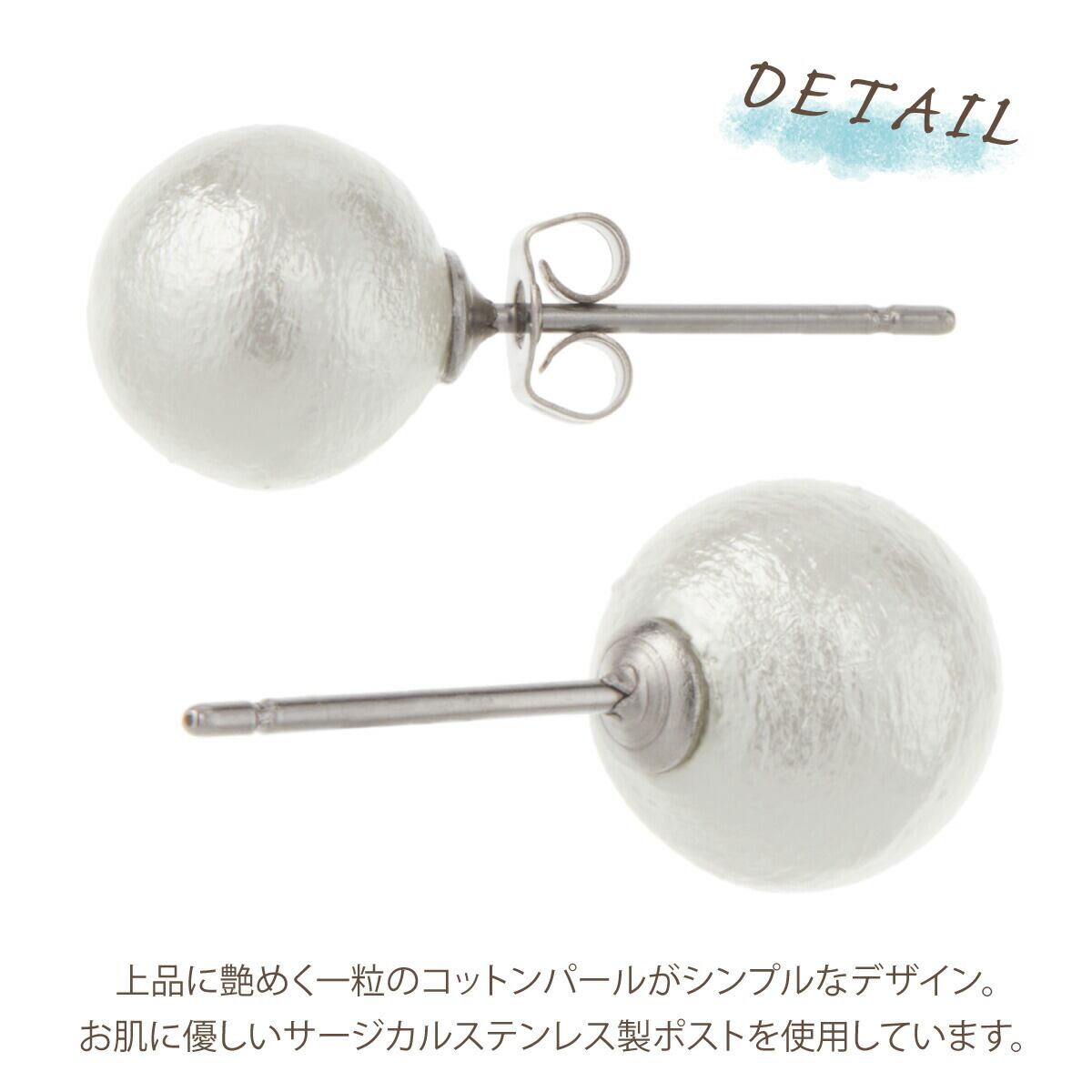 ピアス つけっぱなし レディース サージカルステンレス製ポスト 一粒 コットンパール ドレスに合う お肌に優しい 金属アレルギー対応 オシャレ かわいい 大人可愛い プレゼント ギフト メール便送料無料