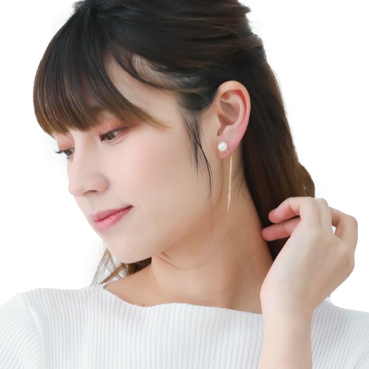 イヤリング ノンホールピアス マルピア レディース パール チェーン ロング 揺れる ドレスに合う バックデザイン シンプル 痛くない 外れにくい ニッケルフリー お肌に優しい 金属アレルギー対応 上品 かわいい オシャレ 誕生日 記念日 プレゼント ギフト メール便送料無料