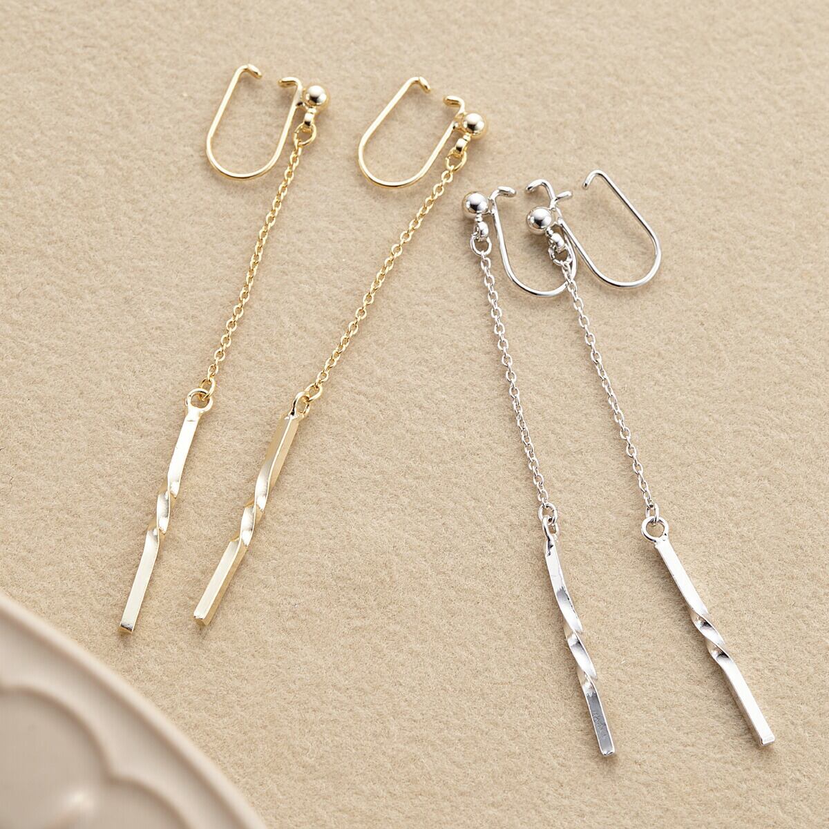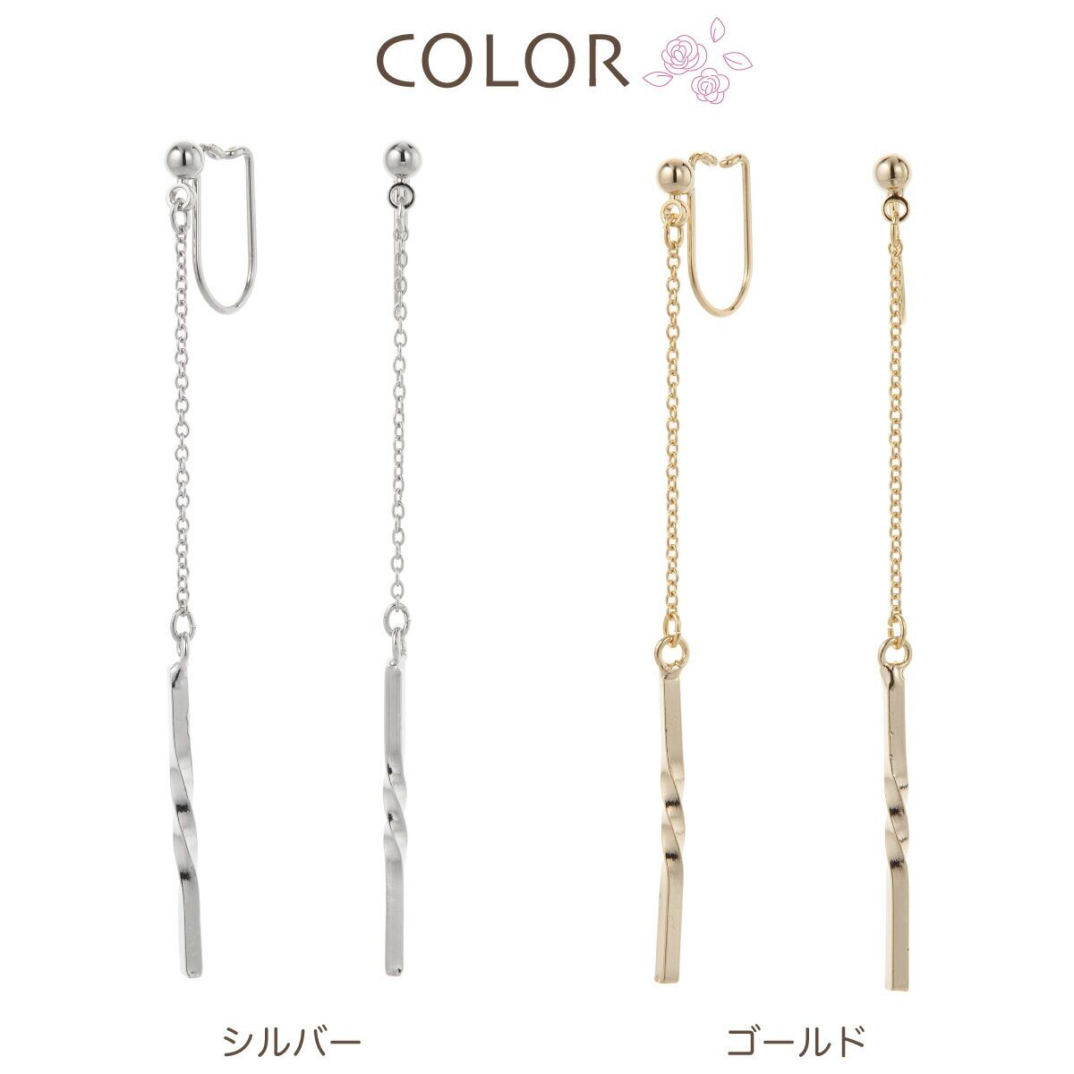ノンホールピアス レディース イヤリング マルピア ひねり 縦ライン ロング チェーン 揺れる シンプル 痛くない 外れにくい ニッケルフリー お肌に優しい 金属アレルギー対応 上品 かわいい オシャレ 誕生日 記念日 プレゼント ギフト メール便送料無料