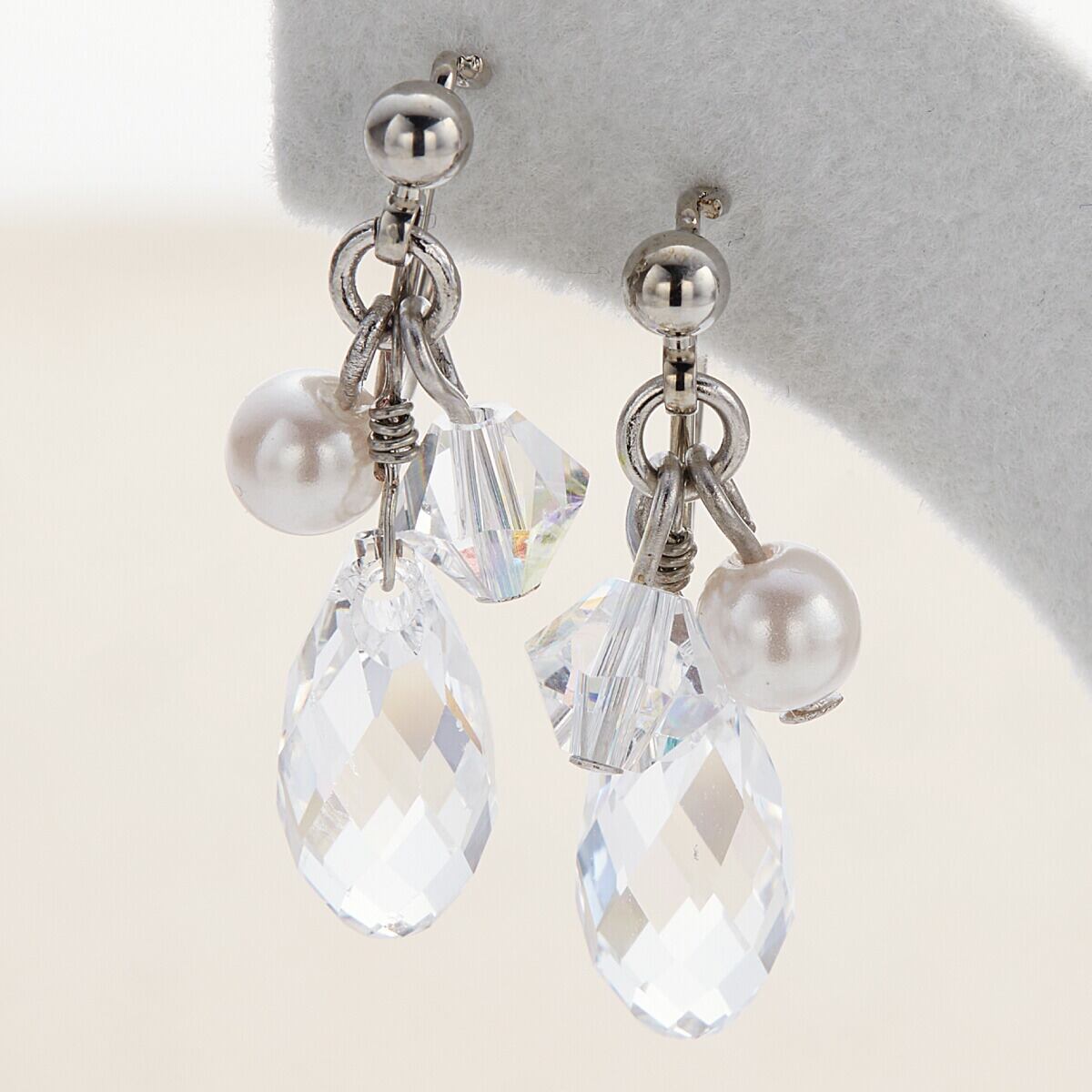 ノンホールピアス レディース イヤリング マルピア ビジュー キラキラ 揺れる パール ドレスに合う 痛くない 外れにくい ニッケルフリー お肌に優しい 金属アレルギー対応 上品 かわいい オシャレ 誕生日 記念日 プレゼント ギフト メール便送料無料