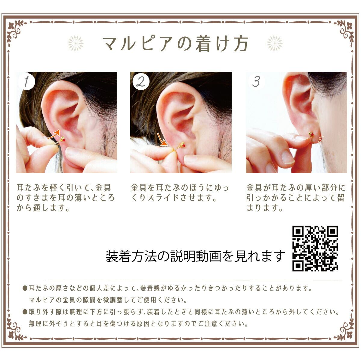 着用の際は、耳たぶを軽く引っ張り、金具の隙間の幅を調整しながら