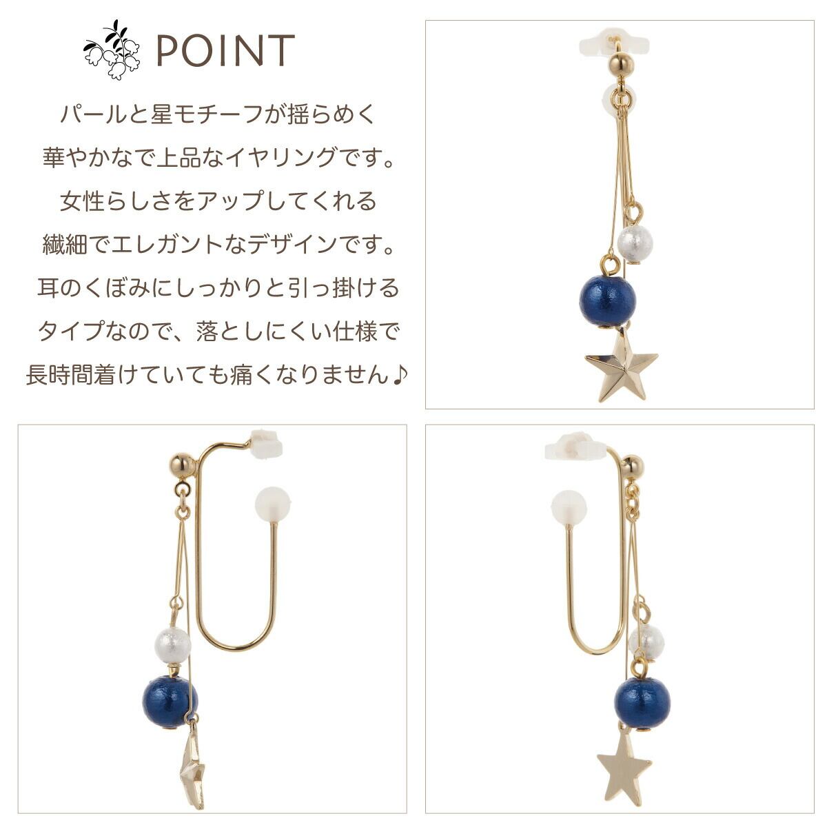 ノンホールピアス レディース イヤリング ピナチョコ 星 スター コットンパール 揺れる ドレスに合う 痛くない 外れにくい パーティー かわいい オシャレ 誕生日 記念日 プレゼント ギフト メール便送料無料