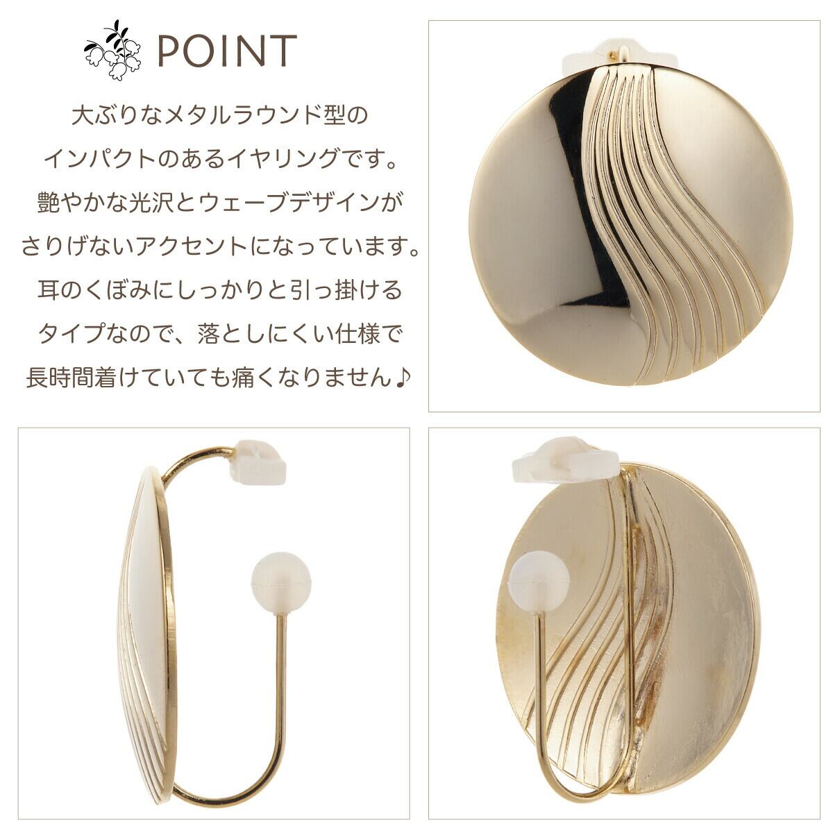 ノンホールピアス レディース イヤリング ピナチョコ メタル ラウンド 丸型 大ぶり ツヤ 痛くない 外れにくい パーティー かわいい オシャレ 誕生日 記念日 プレゼント ギフト メール便送料無料