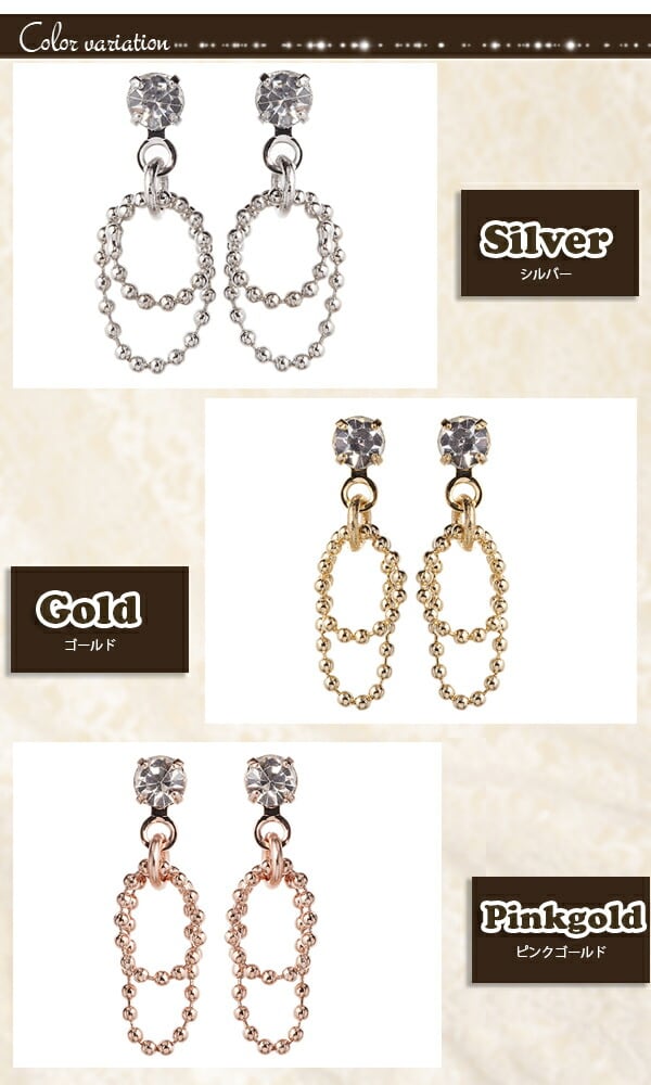 ピアス レディース 金属アレルギー対応 小さなボールを連ねた2本のサークルモチーフスタッドピアス チタン製ポスト 輪っか リング ボールチェーン ラインストーン レディース メール便 送料無料 プチプラ プレゼント 春夏秋冬 大人気