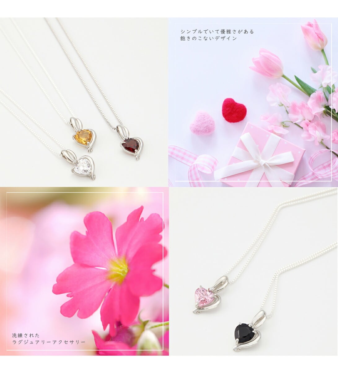 ペンダント レディース ハート型天然石 ネックレス Sv925 シルバー オニキス ガーネット シトリン キュービックジルコニア ベネチアンチェーン 女性 プレゼント 誕生石 送料無料 プレゼント 春夏秋冬 大人気