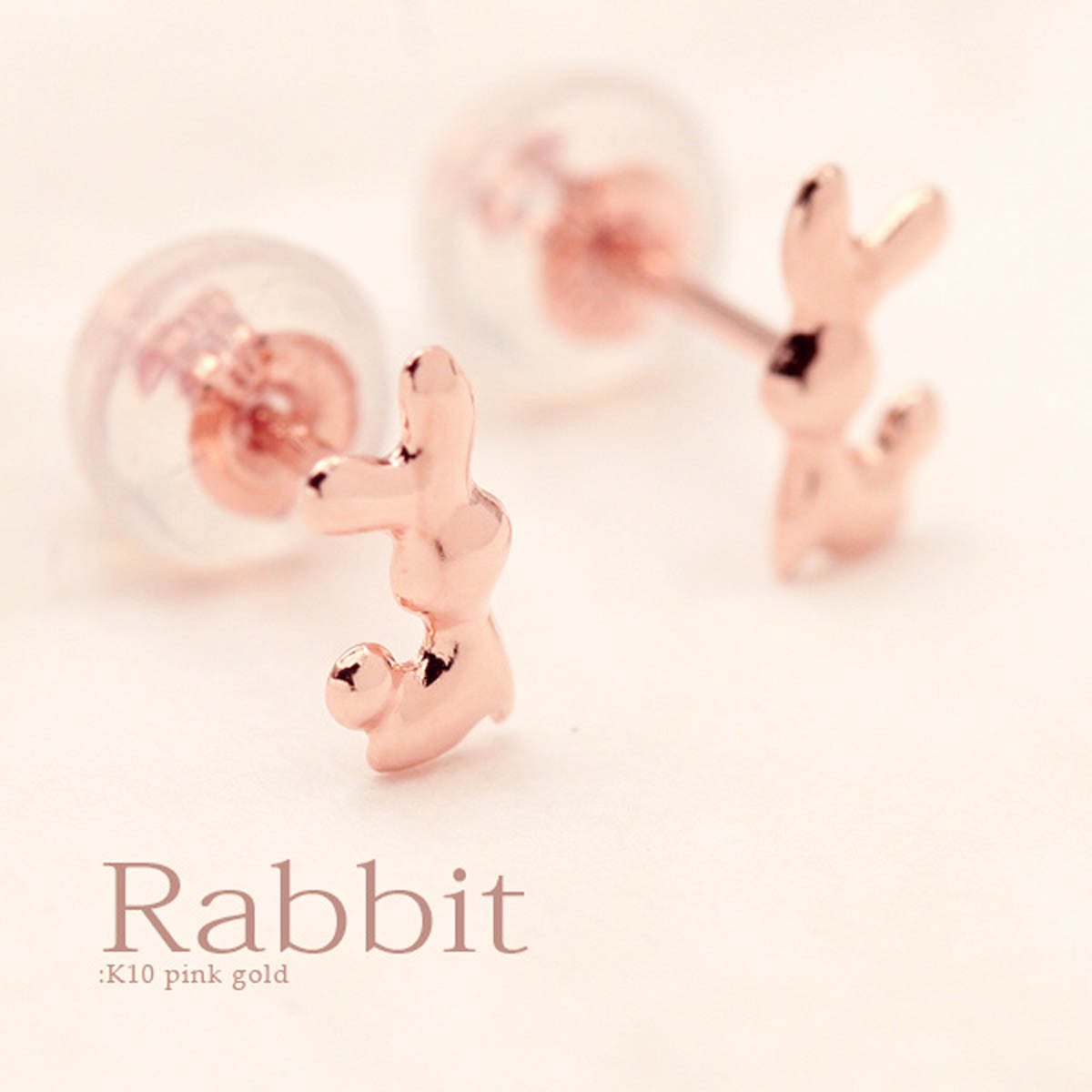 スタッドピアス レディース me on... みぃおん 日本製 K10PG K10WG K10ピンクゴールド K10ホワイトゴールド うさぎ ラビット 小さい 小さめ ミニ ワンポイント 目立たない 上品 可愛い おしゃれ オフィス カジュアル パーティー プレゼント メール便送料無料