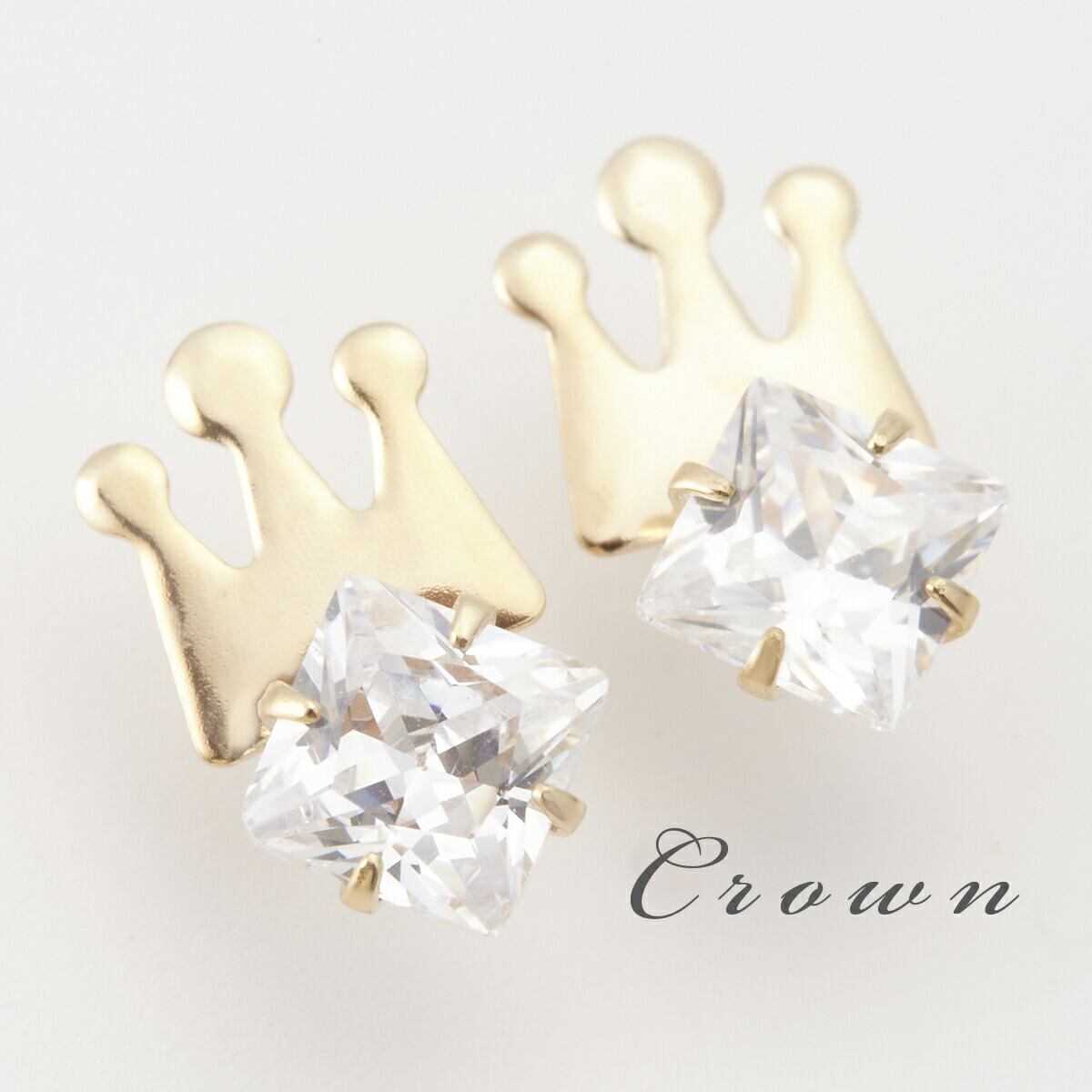 スタッドピアス レディース 10KYG 10金イエローゴールド キュービックジルコニア 王冠 クラウン 4月誕生石 小さめ 小ぶり シンプル おしゃれ 可愛い 上品 気品 清楚 輝き 煌めき キラキラ カジュアル フォーマル 記念日 誕生日 プレゼント ギフト メール便送料無料