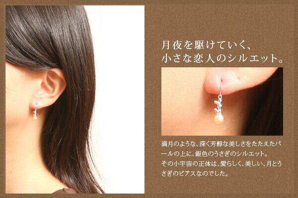 フックタイプのポストにぷっくりしたウサギさんが満月のようなパールに乗った、