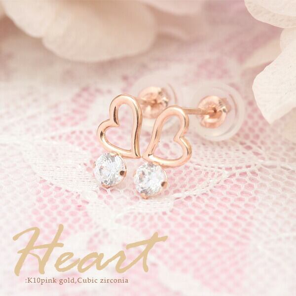 me on... ピアス レディース K10ピンクゴールド天使の羽のようなオープンハート キュービックジルコニア スタッド 繊細 お仕事用 小さめ 小さい メール便送料無料 プレゼント 春夏秋冬 大人気