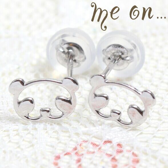 me on... ピアス レディース K10金ホワイトゴールド パンダフェイスモチーフ 動物 ぱんだ ラブリー 面白ピアス メール便送料無料 プレゼント 春夏秋冬 大人気 あす楽