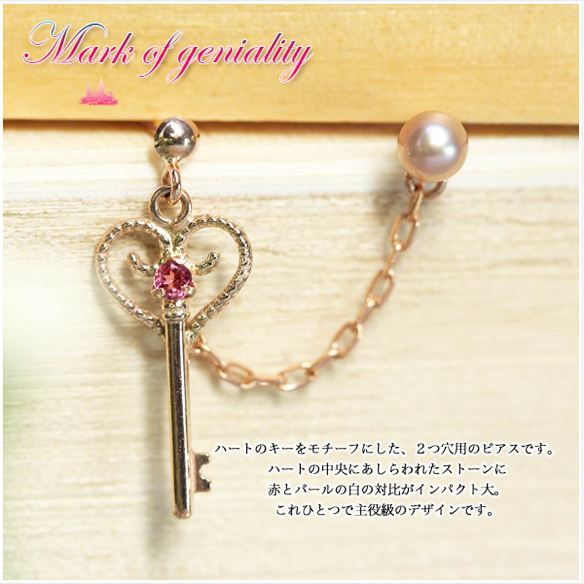 ピアス レディース me on... みぃおん K10ピンクゴールド K10PG ピンクトルマリン パール 片耳用 ツーホールピアス ハート 鍵 キー 小さめ 小さい 揺れる チェーン 煌めく 上品 可愛い おしゃれ エレガント 綺麗 パーティー 誕生日 記念日 プレゼント 送料無料