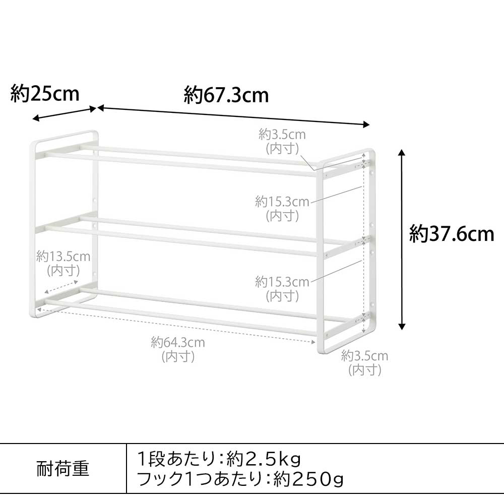 山崎実業 石こうボード壁対応ウォールシューズラック タワー tower 3段 タワーシリーズ 下駄箱 靴置き 奥行25cm 靴入れ 玄関収納 フック付き 壁固定可能 衛生的 シンプル ホワイト ブラック yamazaki 4903208045063 4903208045070
