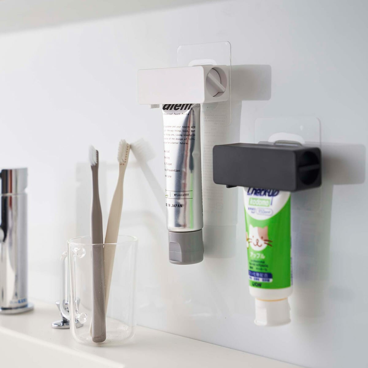山崎実業 フィルムフック 歯磨き粉チューブホルダー タワー tower 浮かせて収納 清潔 汚れにくい チューブ絞り ホルダー 収納 壁面 バスルーム おしゃれ モノトーン シンプル ブラック ホワイト yamazaki 4903208056250 4903208056267