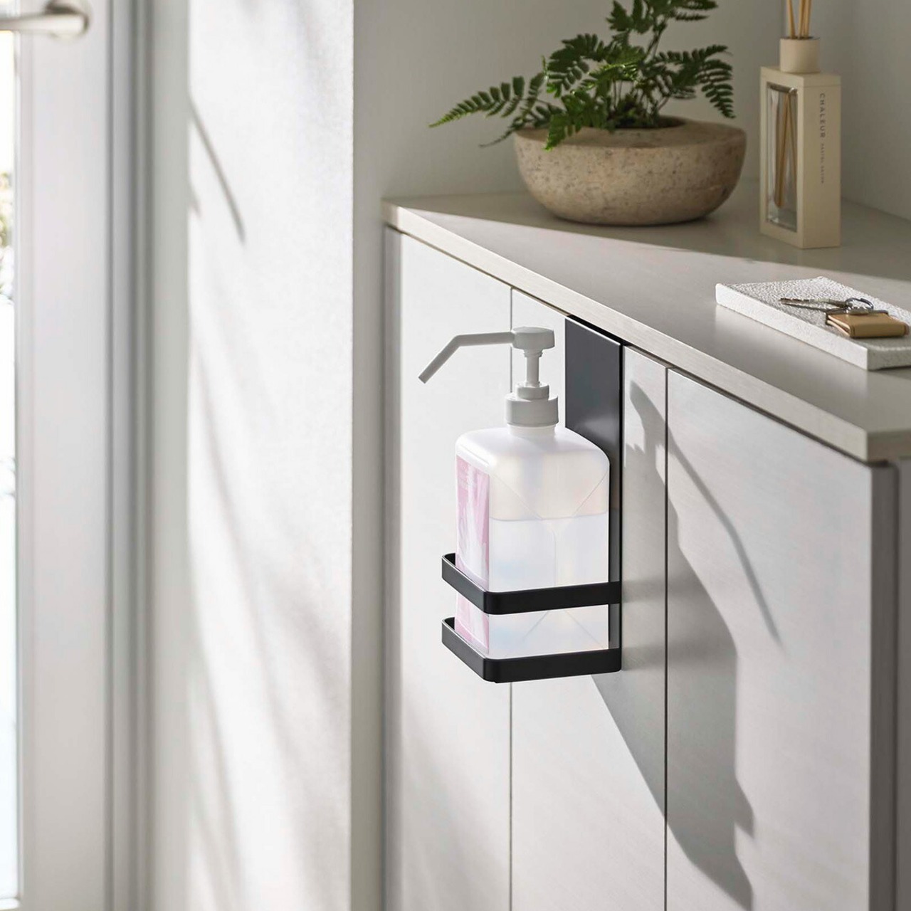山崎実業 引っかけアルコール除菌ボトルラック タワー tower 棚 扉 ポンプ 整理 便利 一括収納 マスク 引っかけ フック付 ホワイト ブラック yamazaki 4903208057165 4903208057172