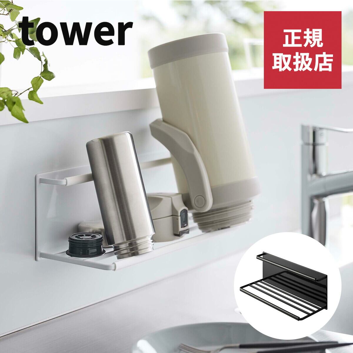 マグネットワイドジャグボトルホルダー タワー tower L 水回り 収納 片付け 便利 台所 キッチンツール キッチン雑貨 磁石 水筒 乾かす モノトーン シンプル ホワイト ブラック yamazaki 4903208080606 4903208080613