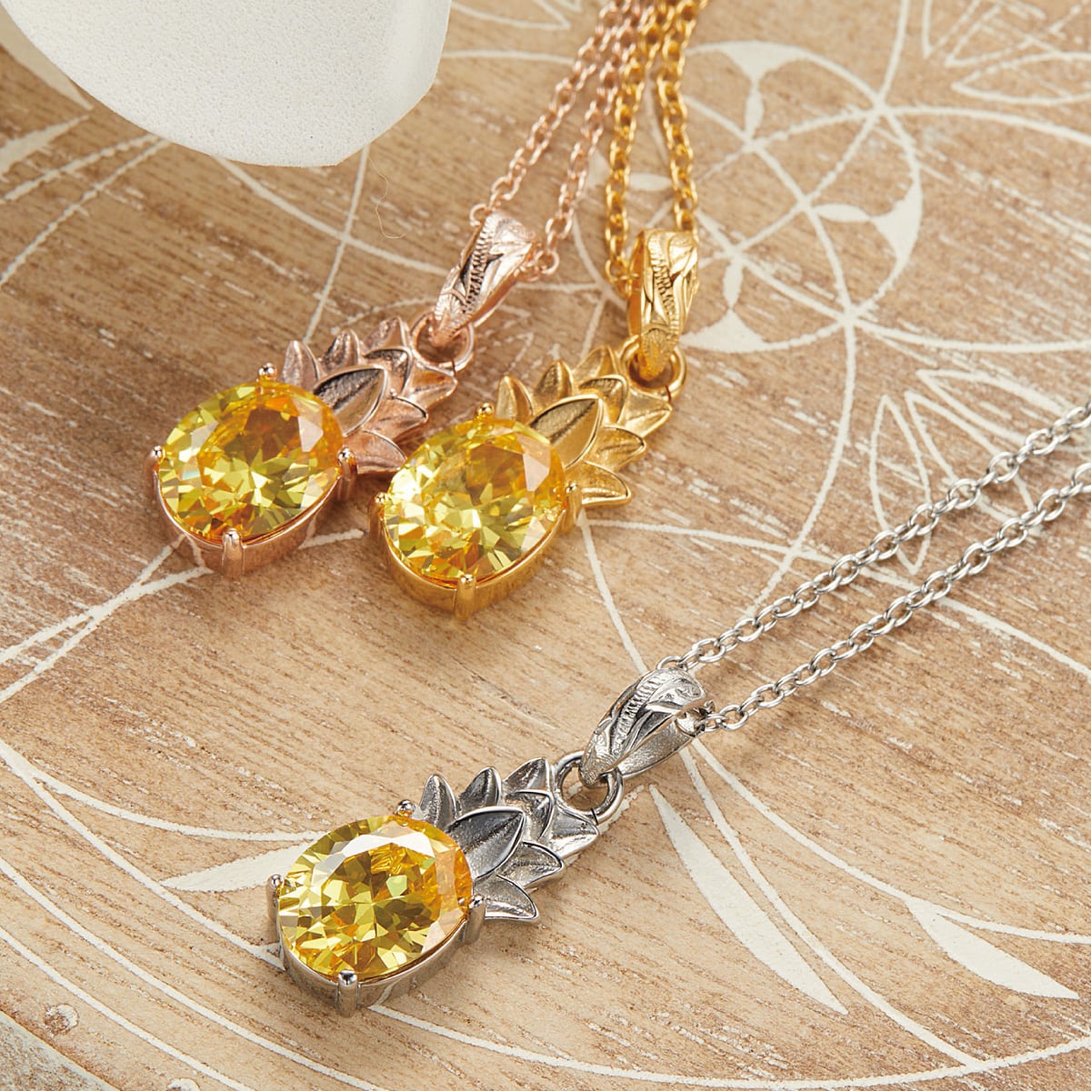 パイナップルをモチーフにしたハワイアンネックレスです。
