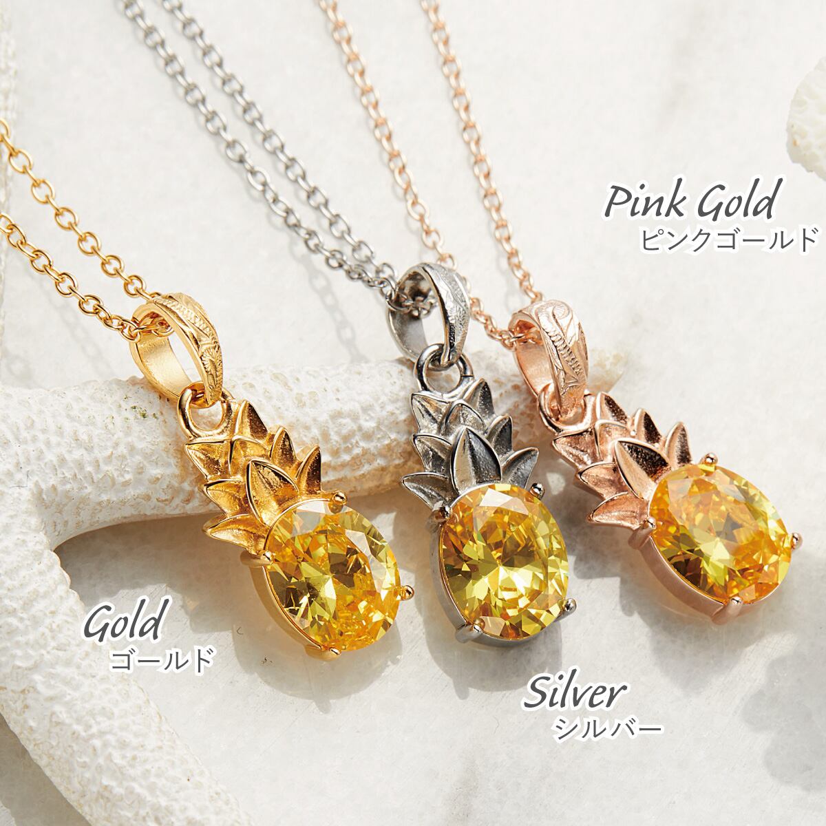 ペンダント ネックレス レディース aab-gpss1631 ハワイアンジュエリー キュービックジルコニア パイナップル 果物 キラキラ 個性的 ユニーク お肌に優しい 金属アレルギー対応 ギフト 送料無料