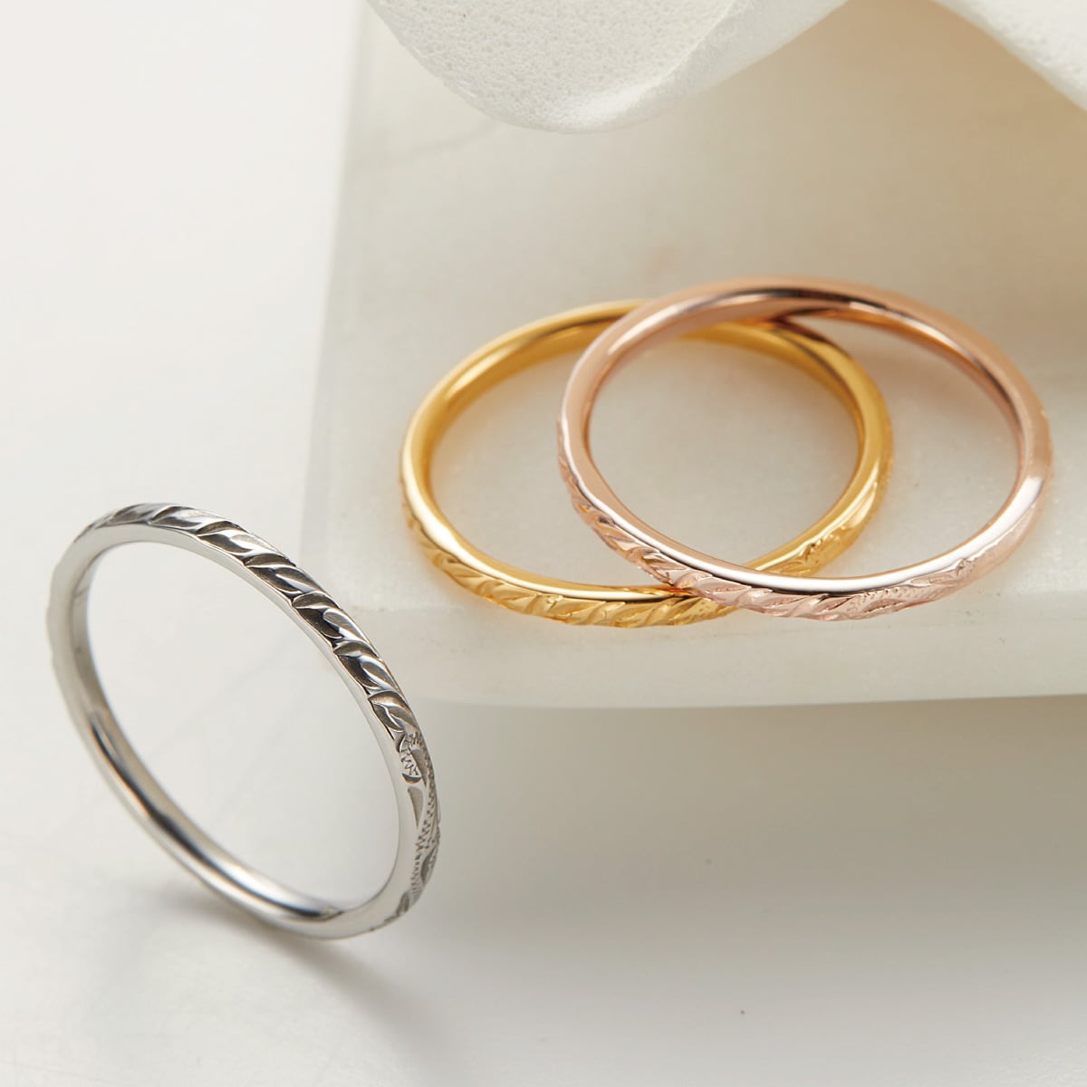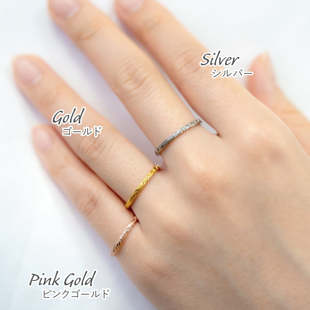 スクロール(波)×マイレ(植物)がハーフ&ハーフにデザインされた繊細なハワイアンリング。