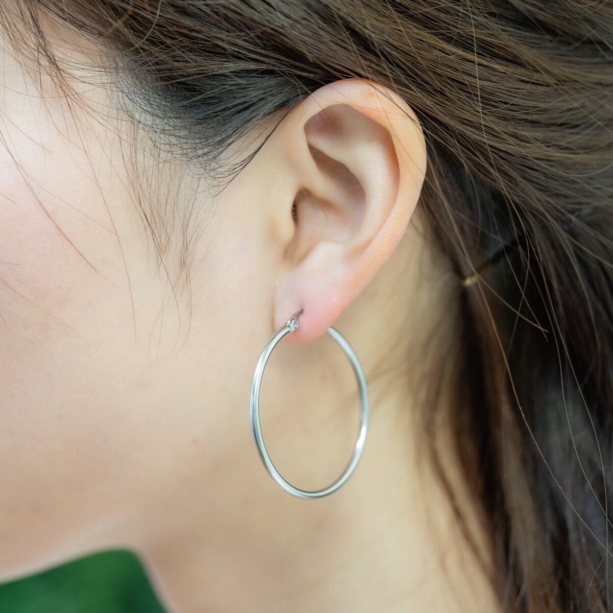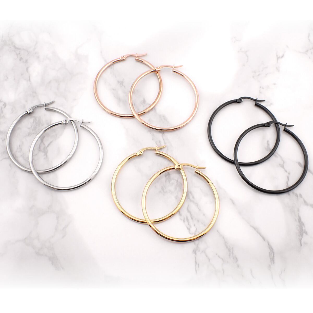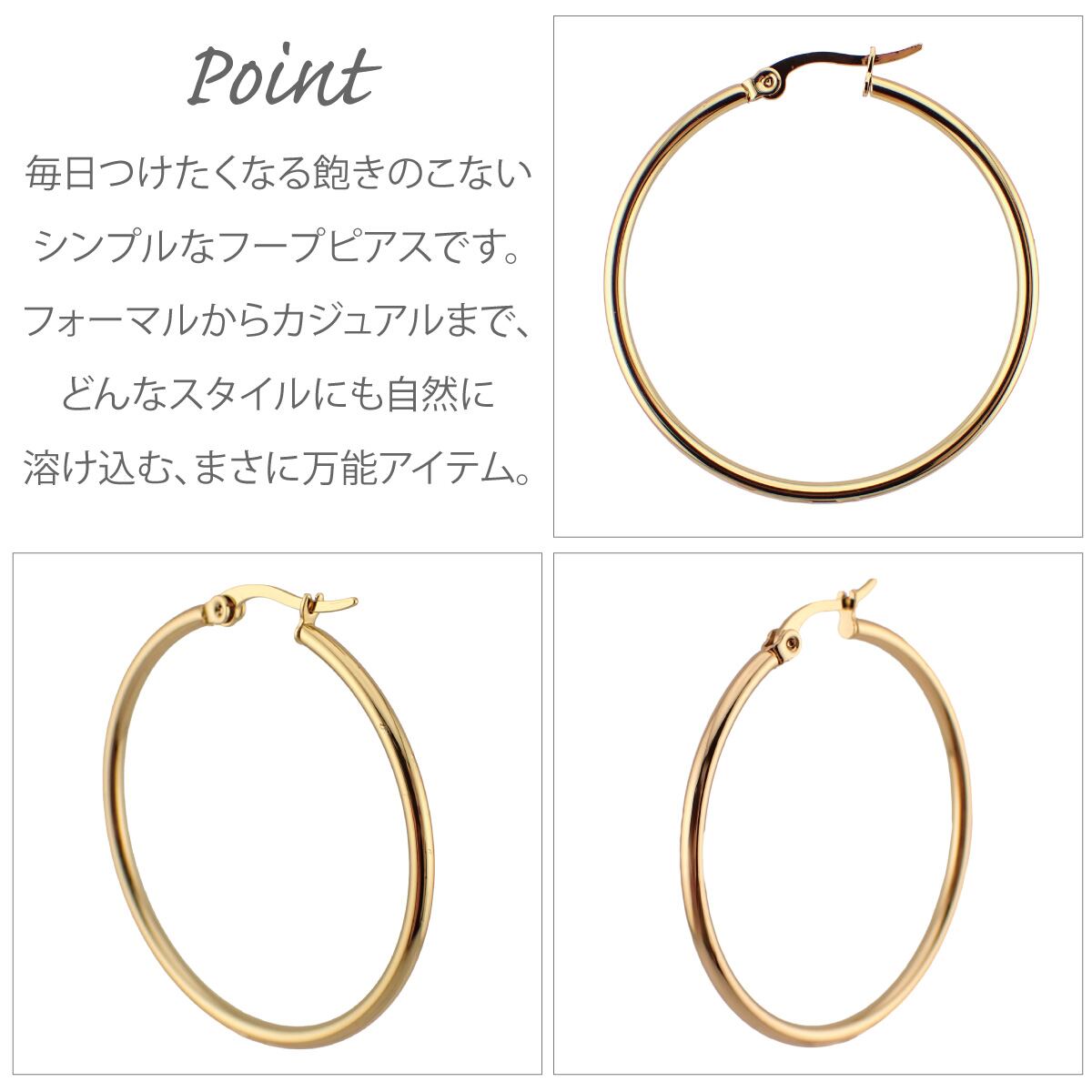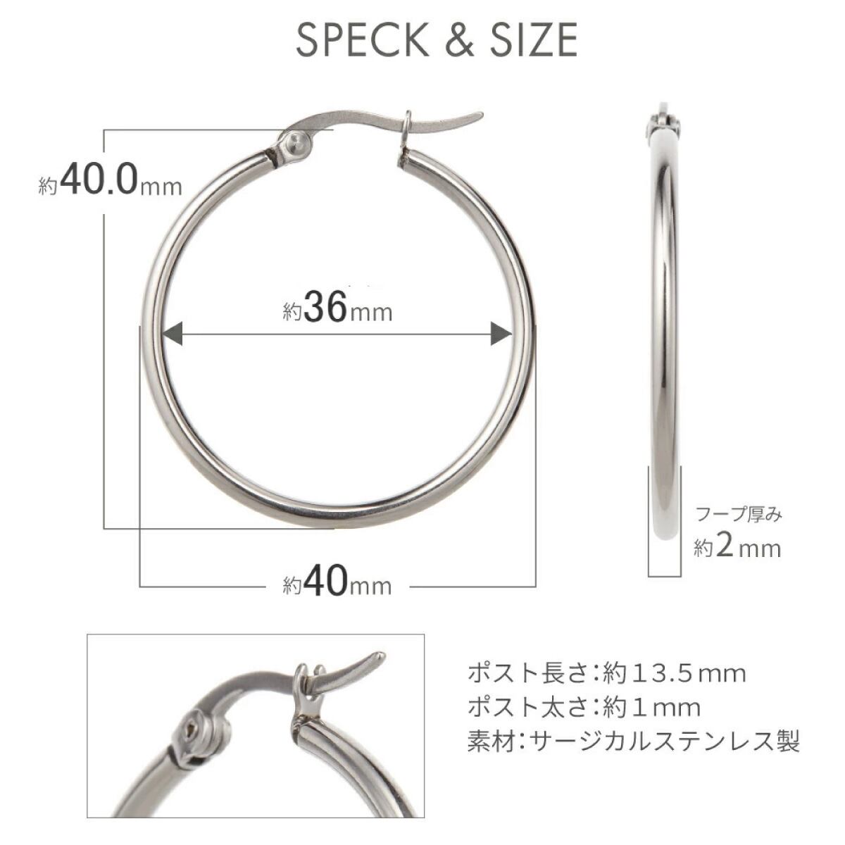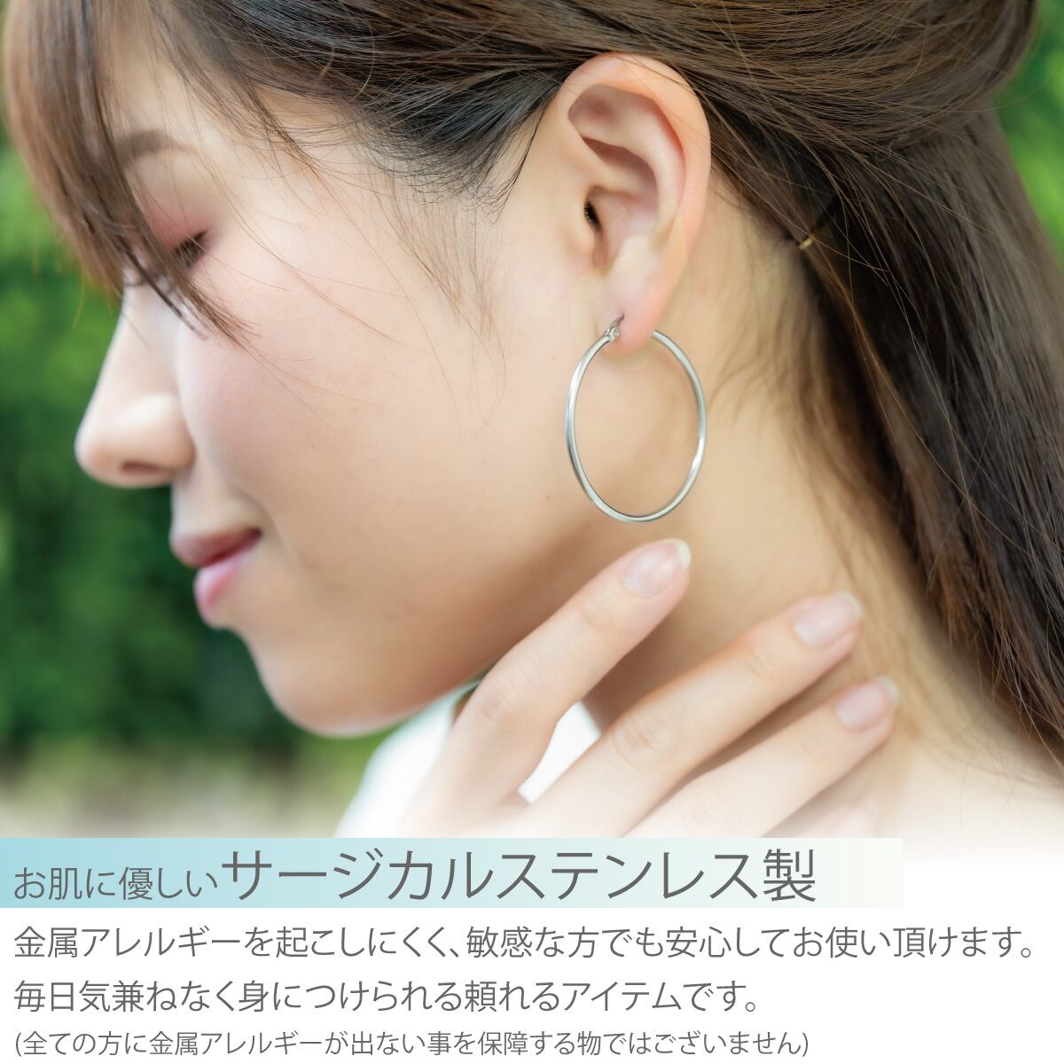 フープ ピアス サージカルステンレス レディース mg-alvy0842 両耳用 お肌に優しい 金属アレルギー対応 金アレ 安心 40mm Mサイズ ワンタッチ ビッグフープ 大きめ 大ぶり 厚み2mm 2ミリ 細い ラッピング対応