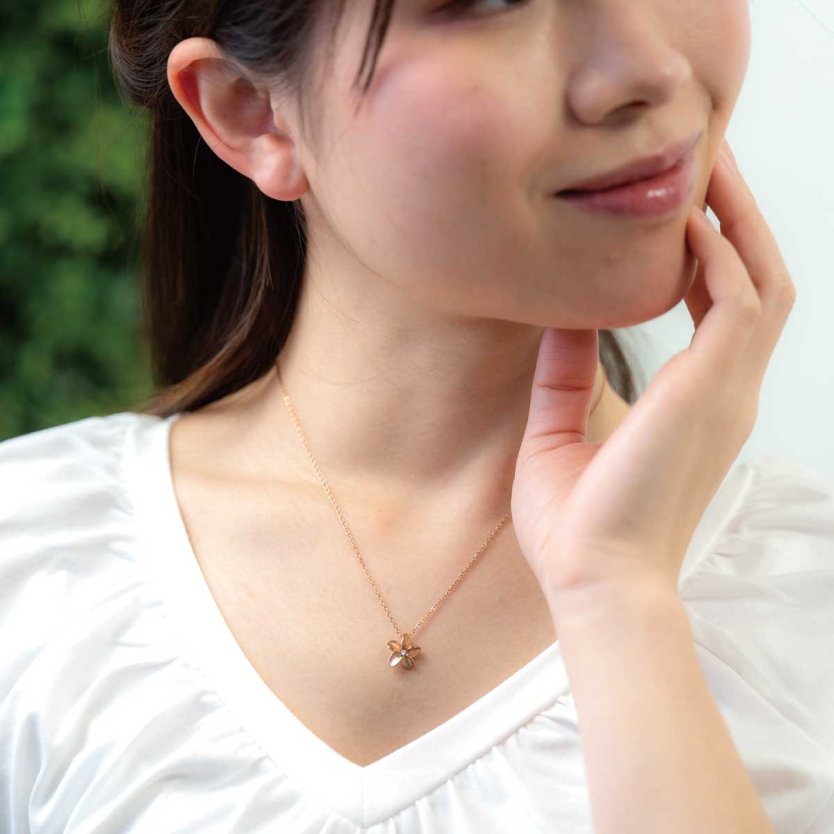 一輪のプルメリアが首元を飾ってくれるプルメリアのネックレスです。