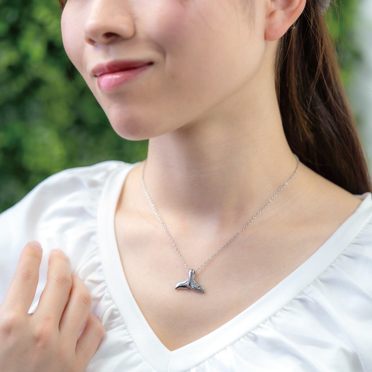 ペンダント ネックレス レディース ss-lmn-38007 サージカルステンレス製 ホエールテール クジラの尻尾 鯨 動物 彫り 模様 ハワイアンジュエリー 大人可愛い 誕生日 記念日 プレゼント ギフト メール便送料無料
