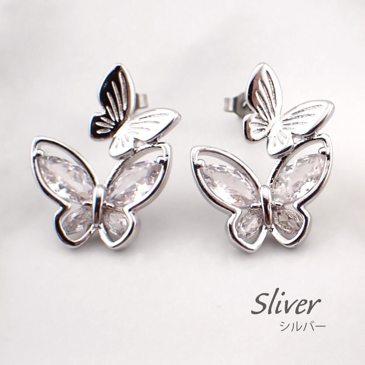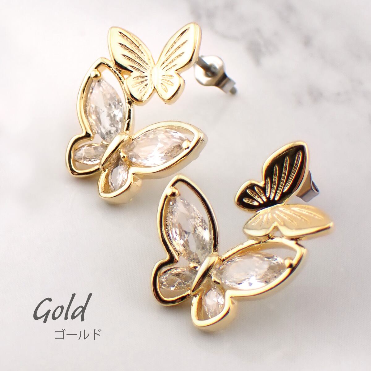 ピアス レディース ss-mp-it-604 両耳用 日本製 チタン製ポスト ニッケルフリー 蝶々 バタフライ ちょうちょ キラキラ お肌に優しい 金属アレルギー対応 カジュアル プレゼント ギフト メール便送料無料