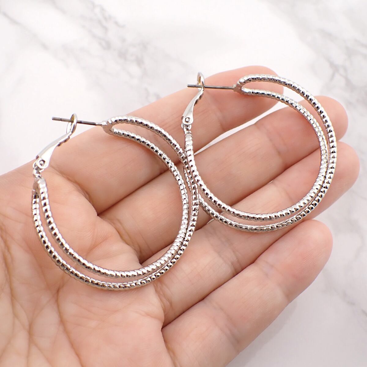 大きめサイズのフープピアスは、装着するだけでお顔まわりが明るくなり、