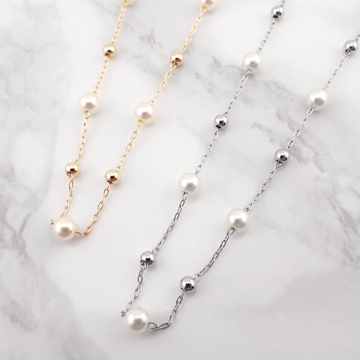 ネックレス レディース ss-pnk-140-141 ニッケルフリー ノンニッケル パール チェーン 華奢 細身 ドレスに合う お肌に優しい 金属アレルギー対応 シンプル 誕生日 記念日 プレゼント ギフト メール便送料無料