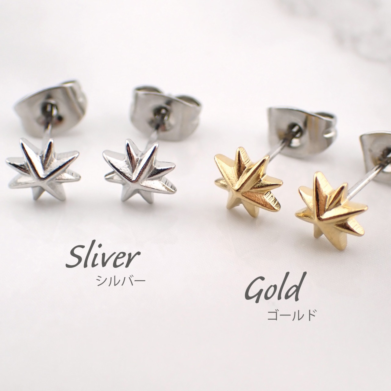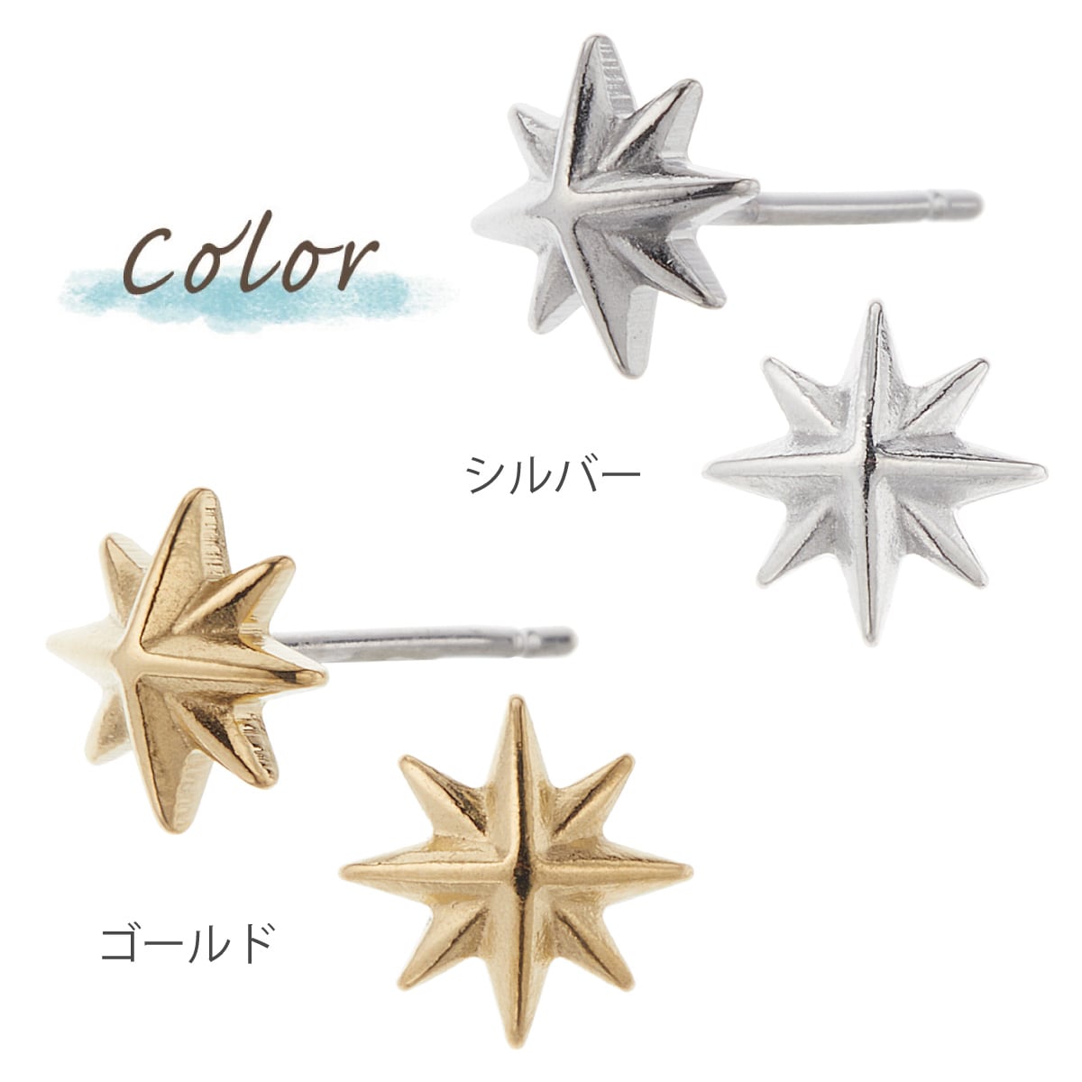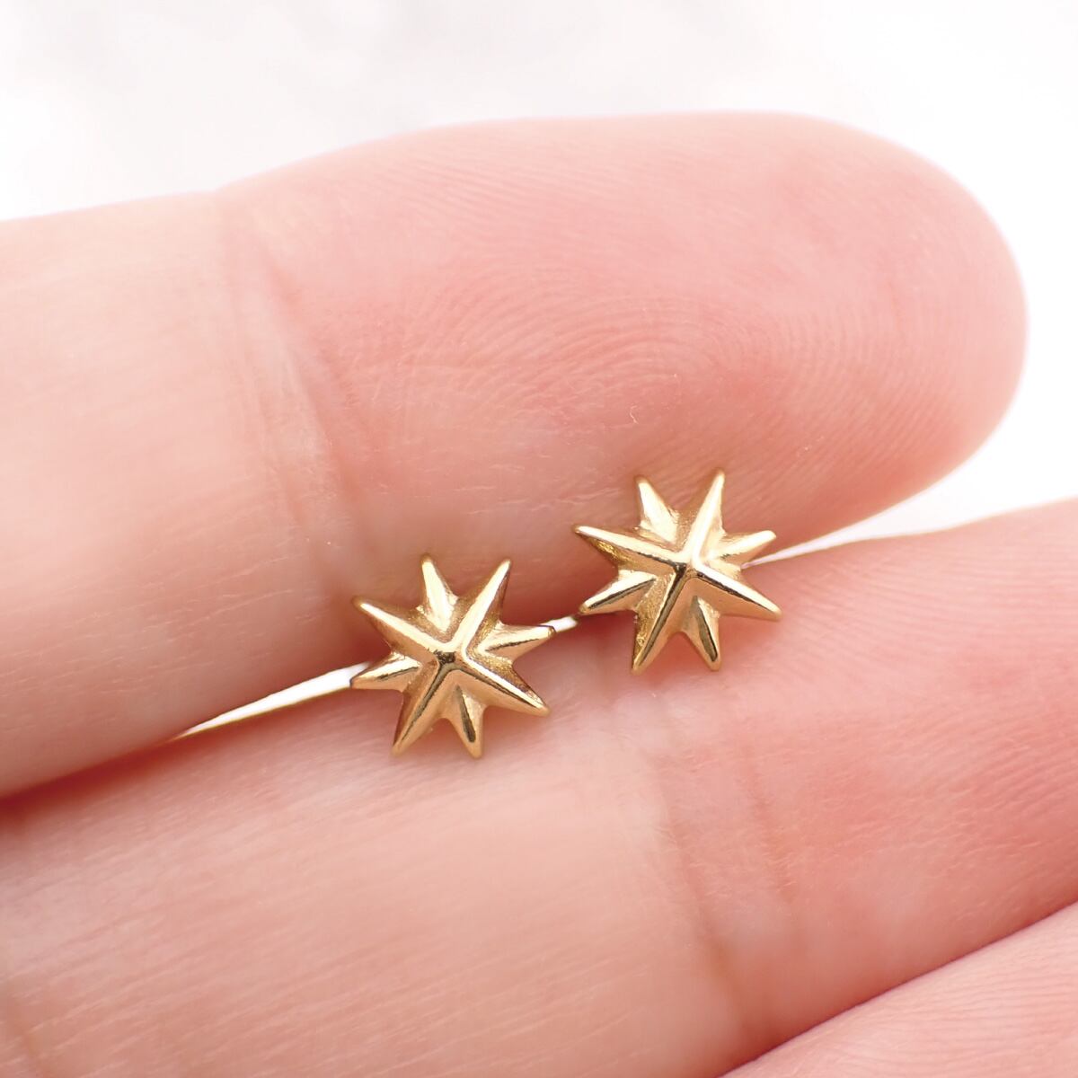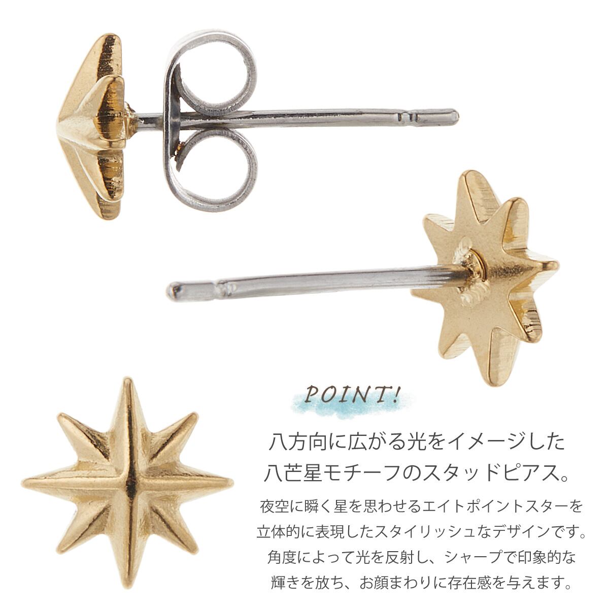 八方向に広がる光をイメージしたスターのスタッドピアスです。