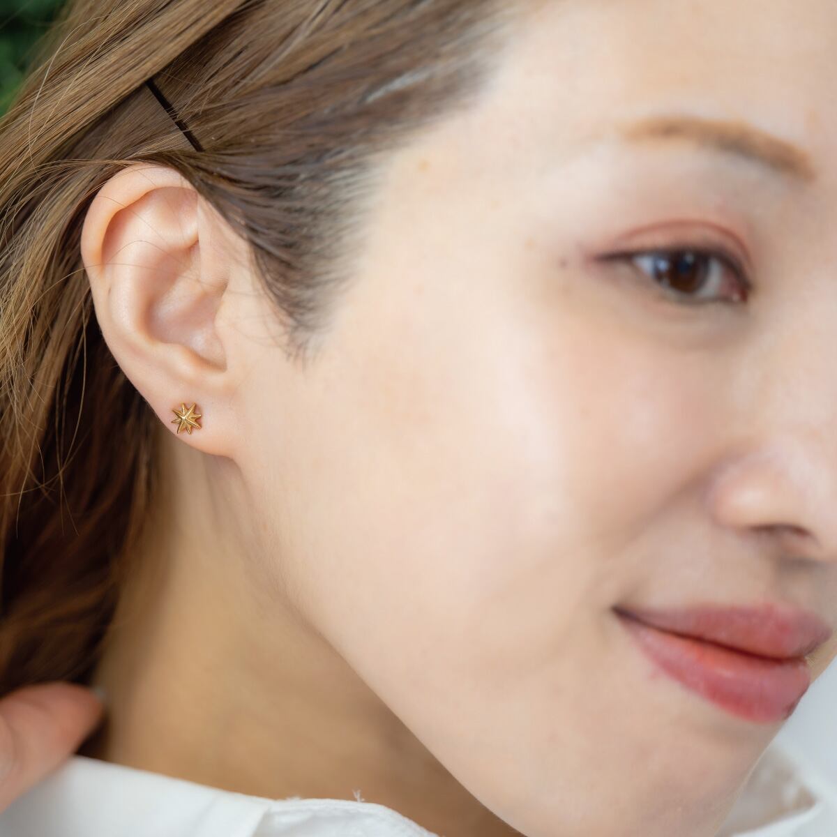 輝きを放ち、お顔まわりに存在感を与えます。